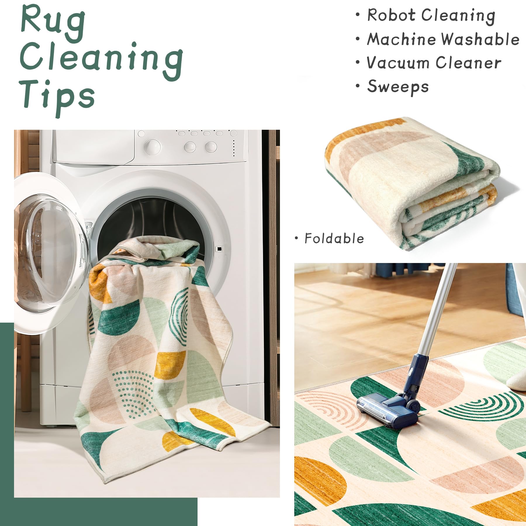 MUJOO Green Washable Rugs 8x10',Boho Area Rugs for Living Room Bedroom,Large Throw Floor Carpet Non Slip Soft Modern Abstract Sage Green