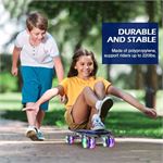 • Create Fun: The skateboard is equipped with light-up wheels for really cool cruising, the lights on the wheel when it's rolling are bright and colorful, adding an extra element of fun. You don't have to worry about charging it or replacing the batteries, which always light up when you ride.
