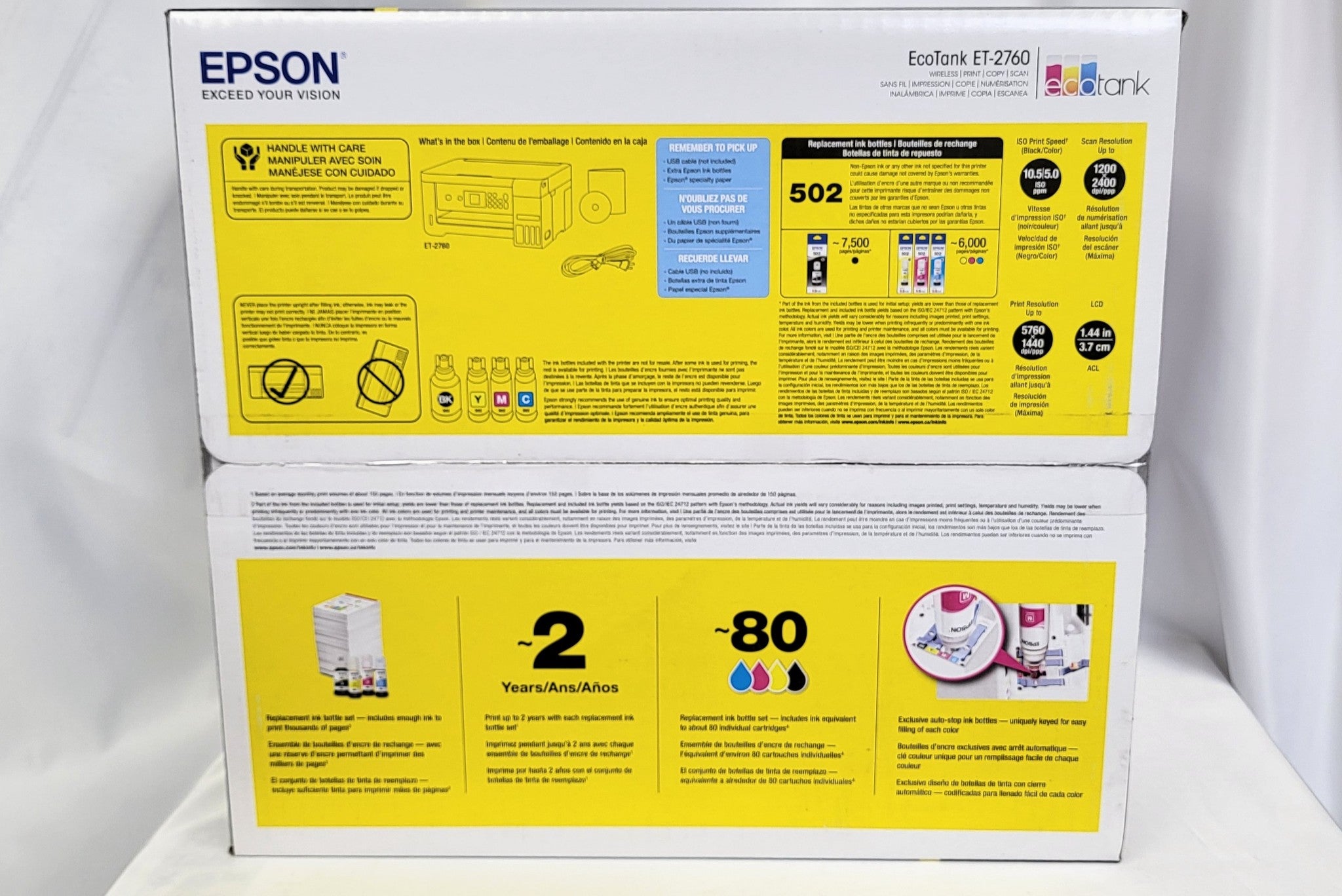 NEW, EPSON EcoTank ET-2760 Wireless Color Inkjet All-In-One