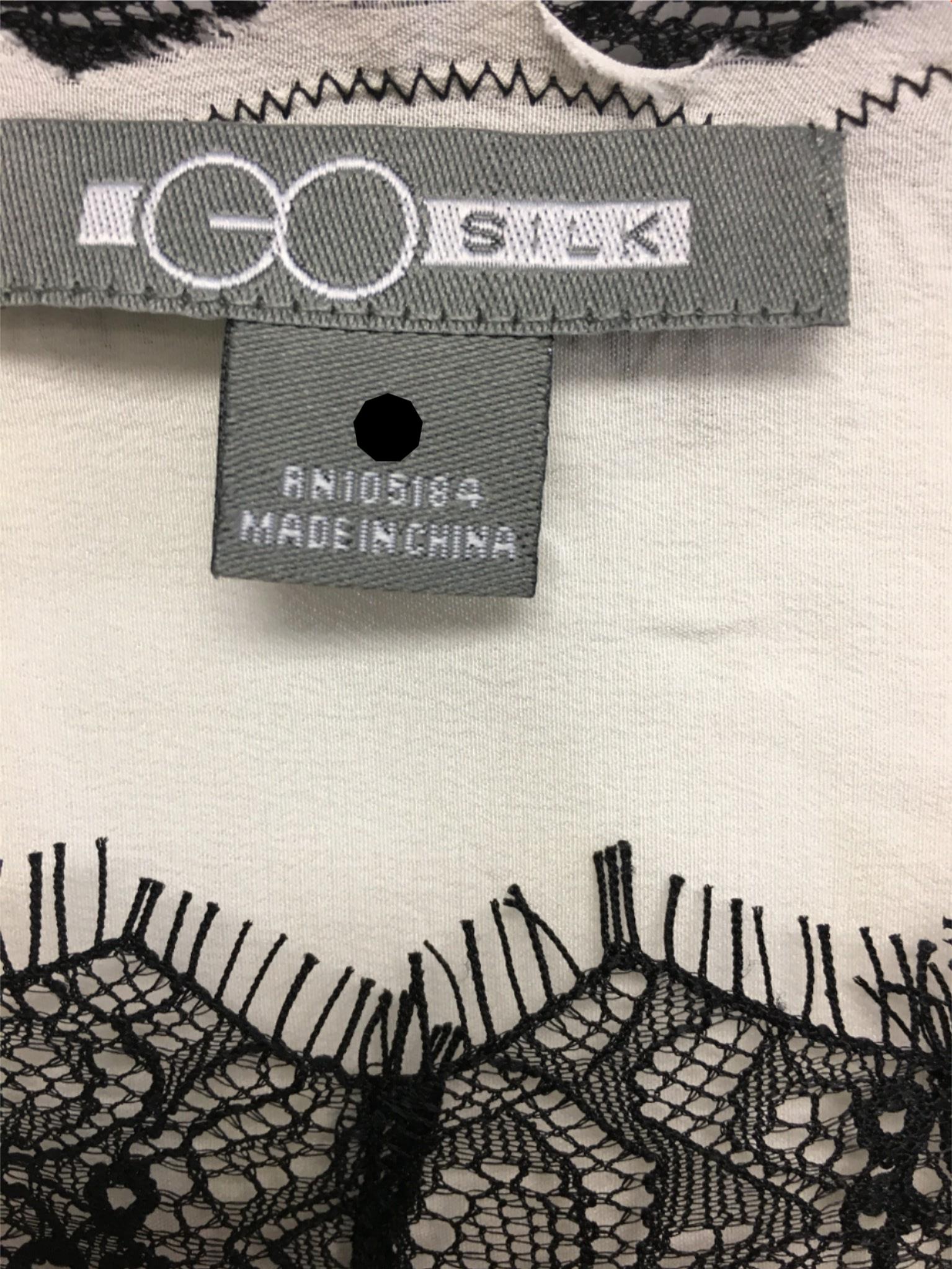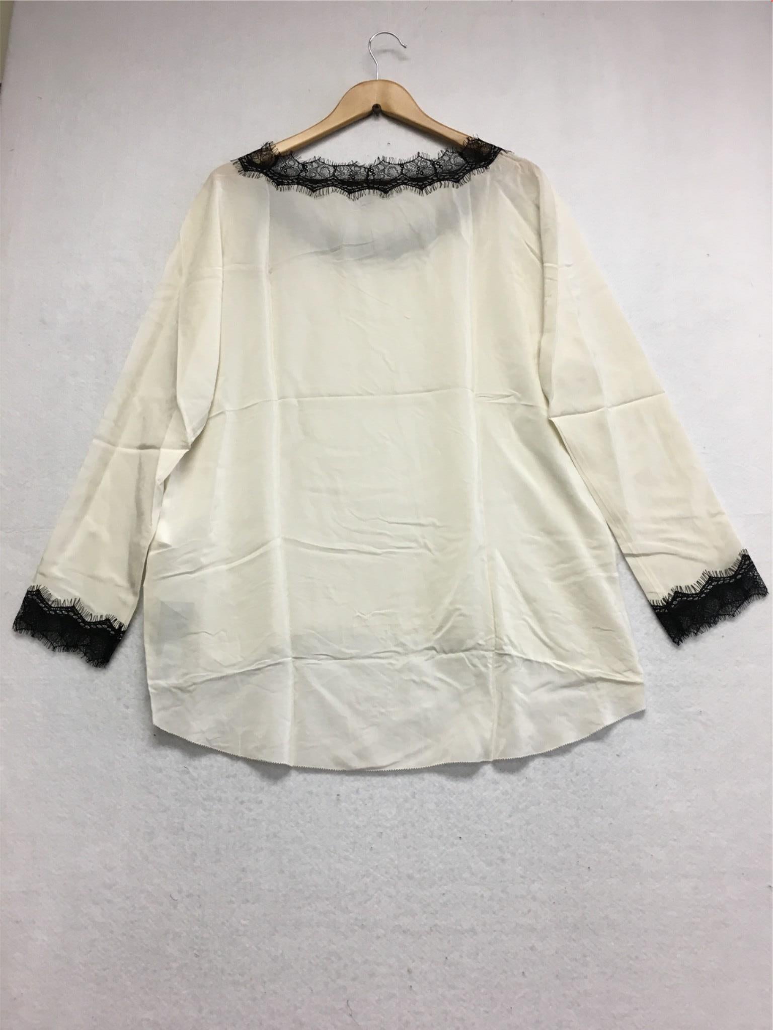 New GO SILK, Lace Trimmed Blouse Ecru Medium