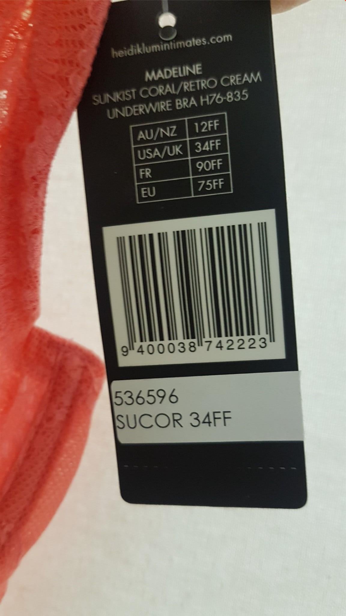 New Heidi Klum, Madeline Stretch Silk, Sunkist Coral/Retro Cream, Underwire Bra H76-835 Size 34FF/EU75FF
