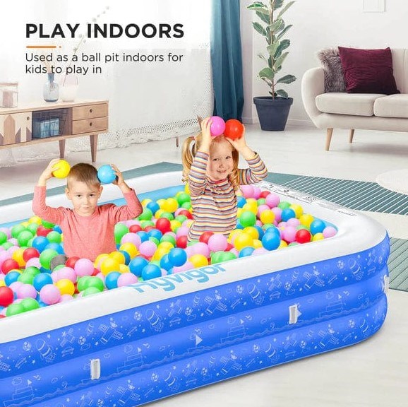• PLAY INDOOR: It is not only a inflatable swimming pool but also a ball pit, sand pit, fishing pond, toy pool that your kids can play at home to enjoy playtime not just in the summer or outdoors.