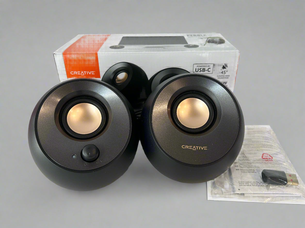 • 45° ELEVATED DRIVERS | Pebble V2 retains the same 45° elevated drivers as Creative Pebble that are specifically angled, to project audio directly towards you for an immersive personal listening experience