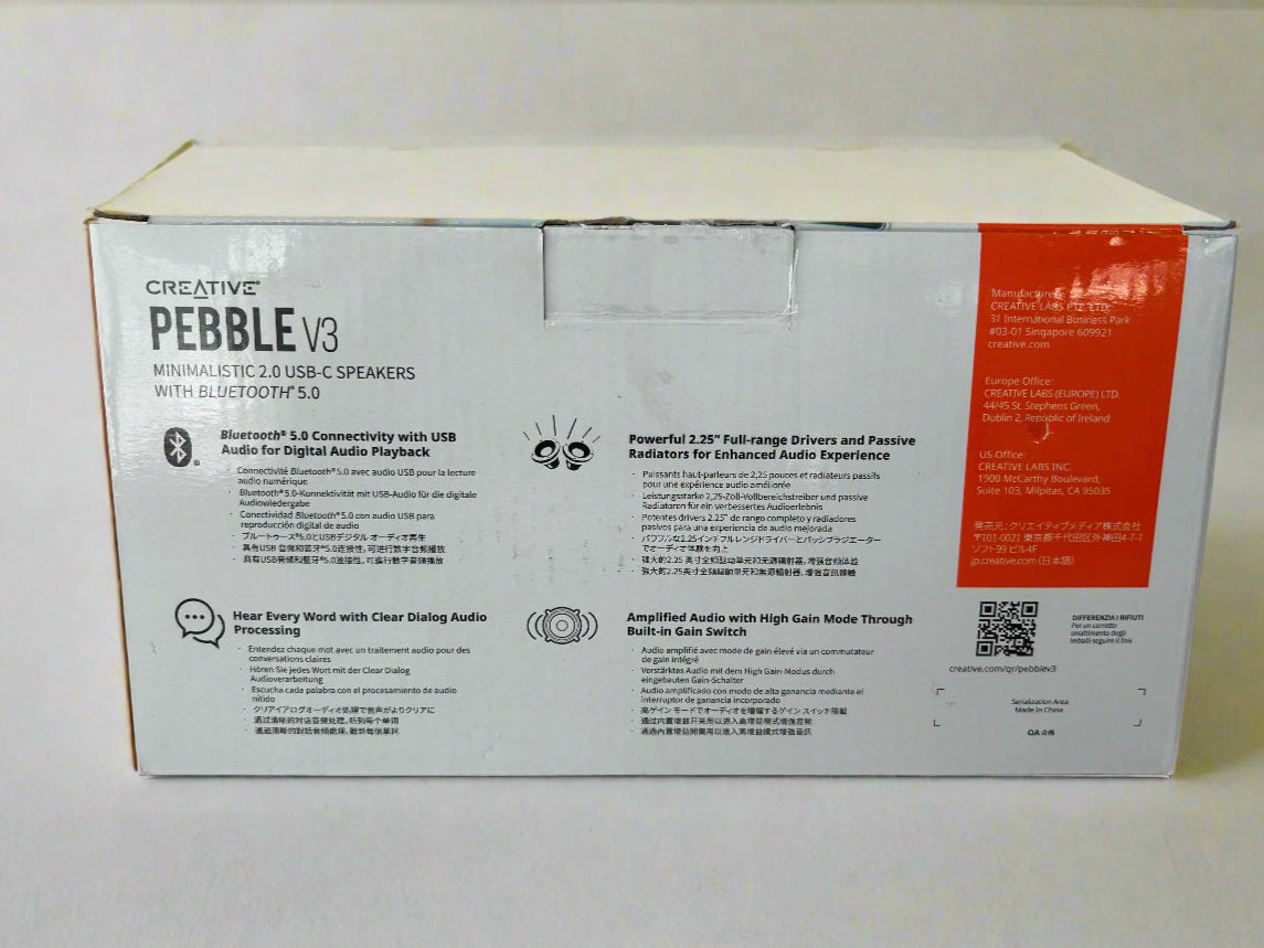 • HEAR EVERY WORD WITH CLEAR DIALOG AUDIO PROCESSING | Engineered with our Clear Dialog audio processing, the Creative Pebble V3 delivers clear and intelligible spoken dialogs when watching YouTube, movies and TV series without affecting the audio effects happening in the show’s background, and without having to turn up the volume unnecessarily