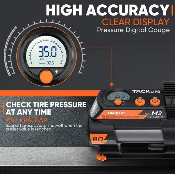 NEW, TACKLIFE M2 12V DC Digital Auto Tire Inflator
