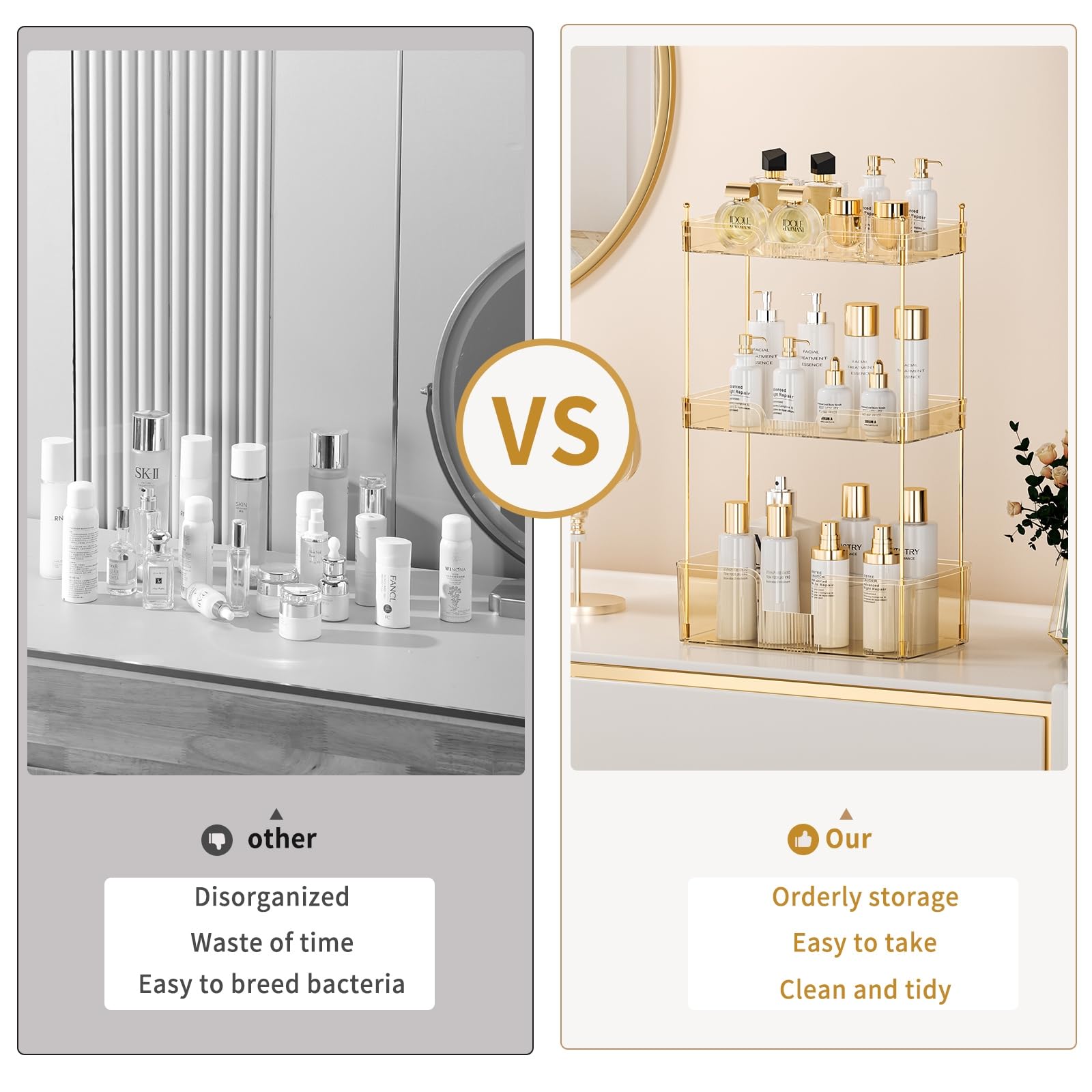 Nohozi 3 Tier Bathroom Countertop Organizer, Makeup Skin Care Organizer, Perfume Tray Vanity Countertop Organizer for Bathroom Countertops