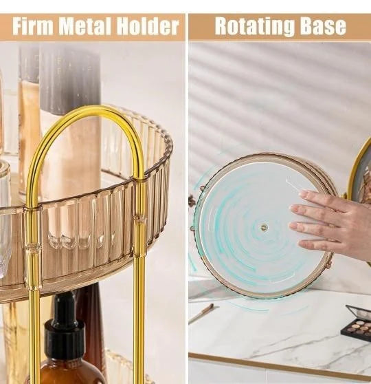 nohozi 360° Rotating Makeup Organizer,2 Tier Skin Care Organizer,Large Capacity Skincare Make Up Storage Perfume Organizers for Bathroom Counter, Cosmetic Lipstick Dresser Organizer