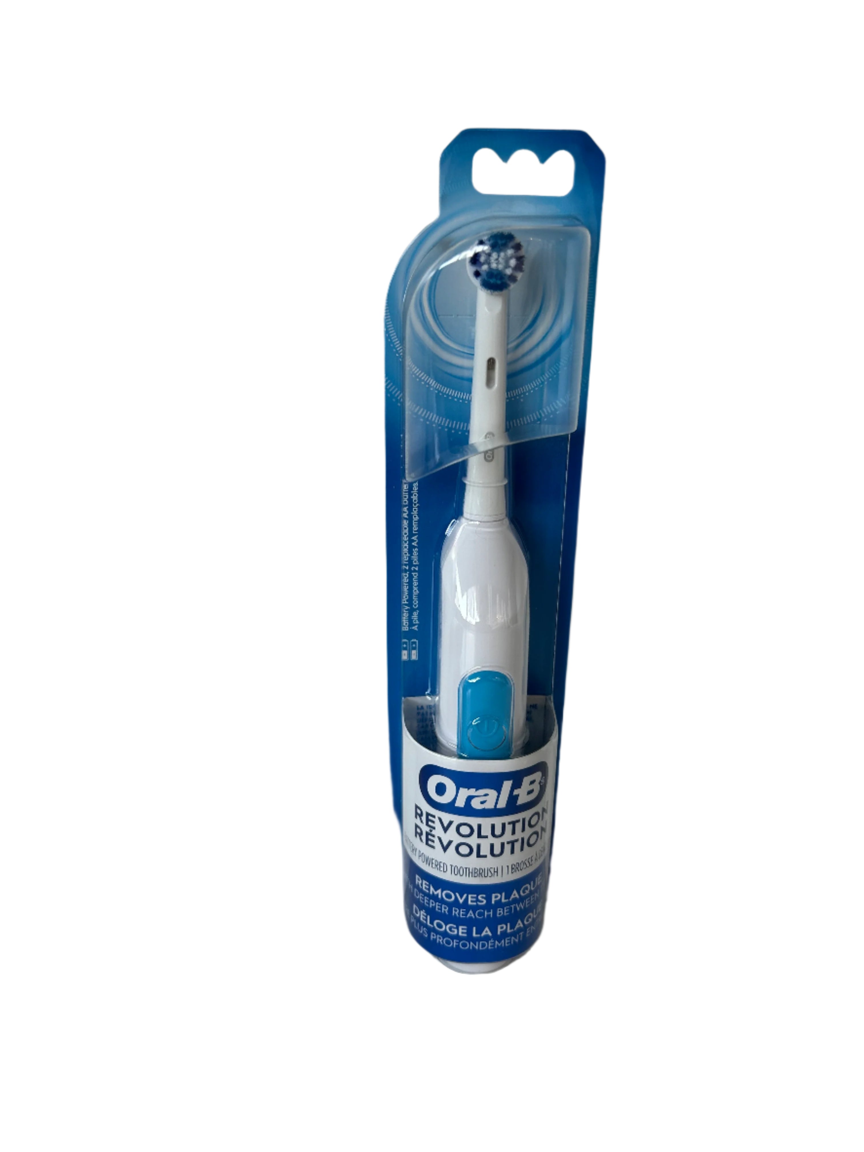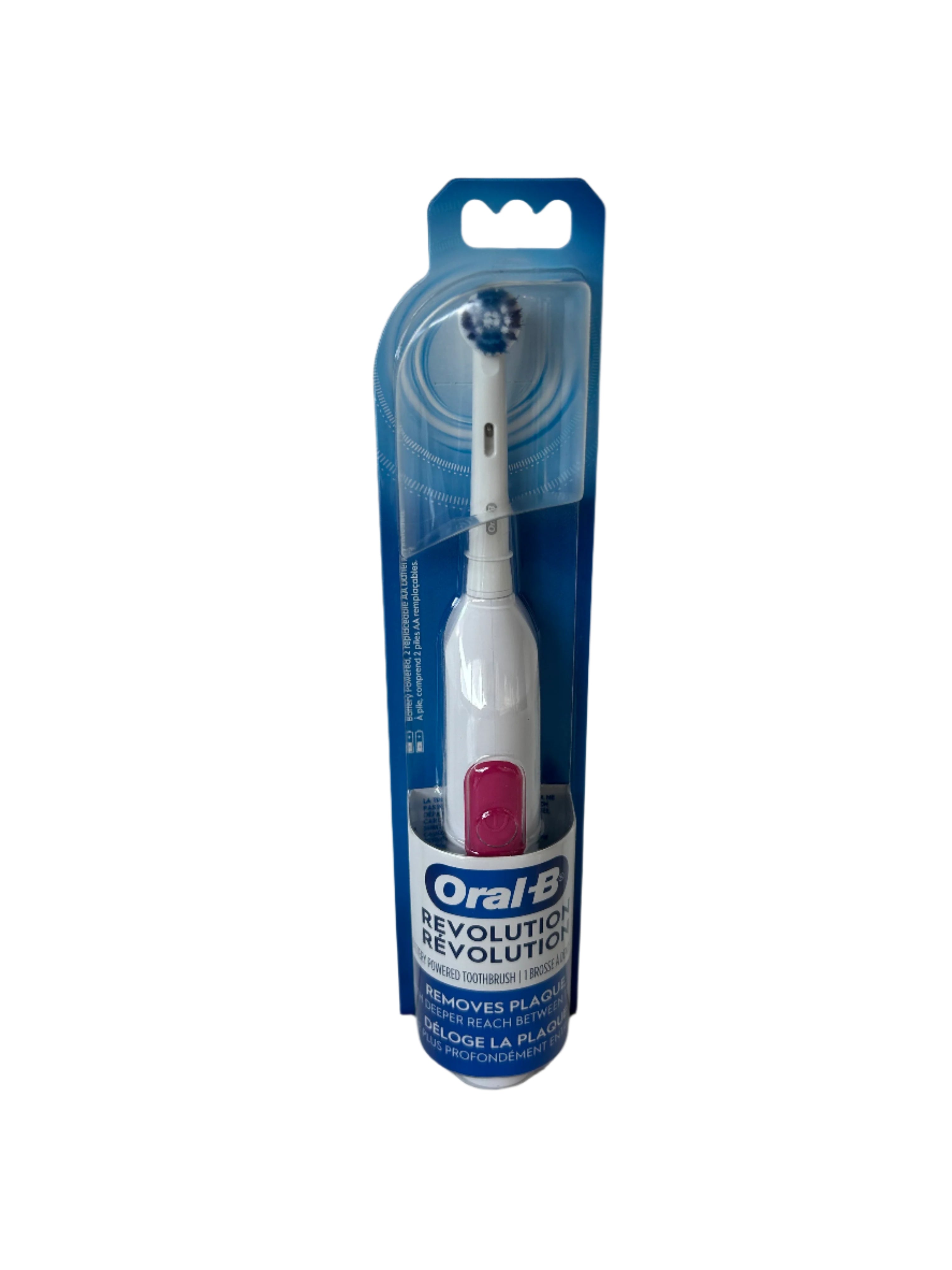 Experience a better clean with the Oral-B Revolution battery powered toothbrush. This toothbrush is designed to remove plaque with deeper reach between teeth compared to a regular manual toothbrush. The dentist-inspired round brush head gets a deep clean in hard-to-reach places and cleans better than a regular manual toothbrush. It is brought to you by Oral-B, the #1 brand used by dentists worldwide.