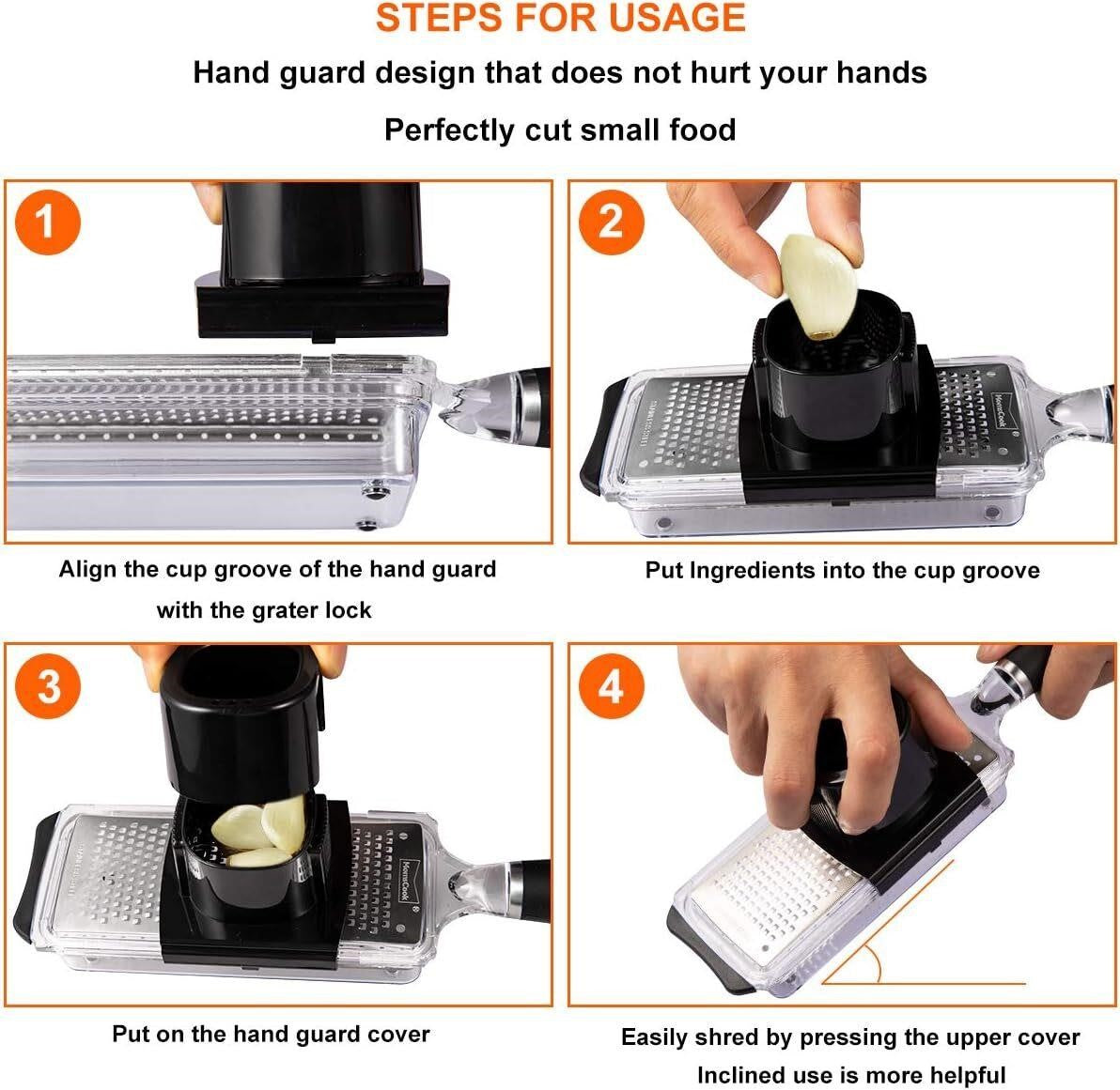 NO WORRY ABOUT FINGER HURT:the design of the hand guard can help you scraping a small pieces of food more easily, you do not worry about cut yourself when you zesting,allowing you to enjoy the time in the kitchen.