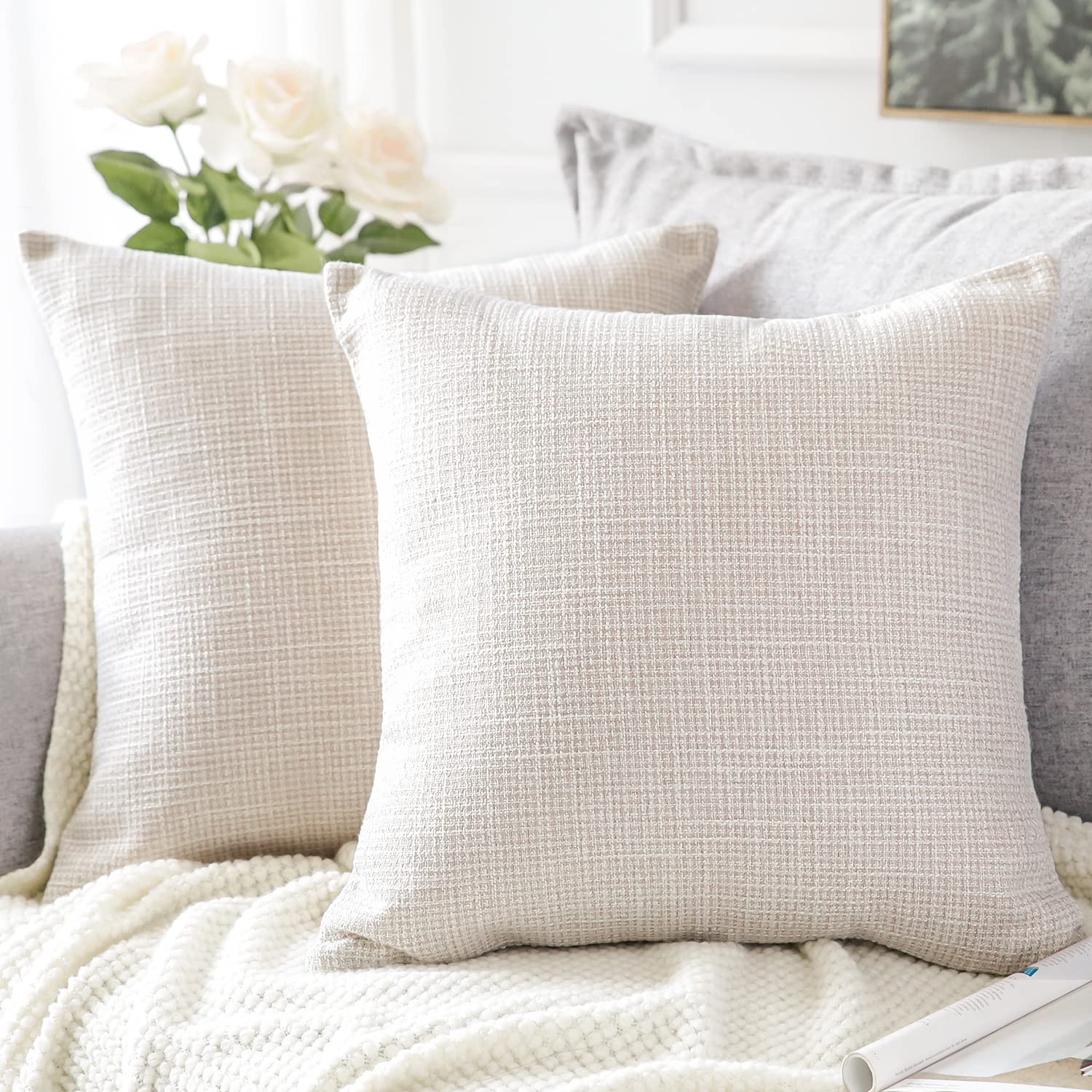 OTOSTAR Linen Throw Pillow Covers Set of 2 Decorative Square Pillowcases Cushion Covers 16x16 Inch for Home Decor Sofa Bedroom Car 40 x 40CM