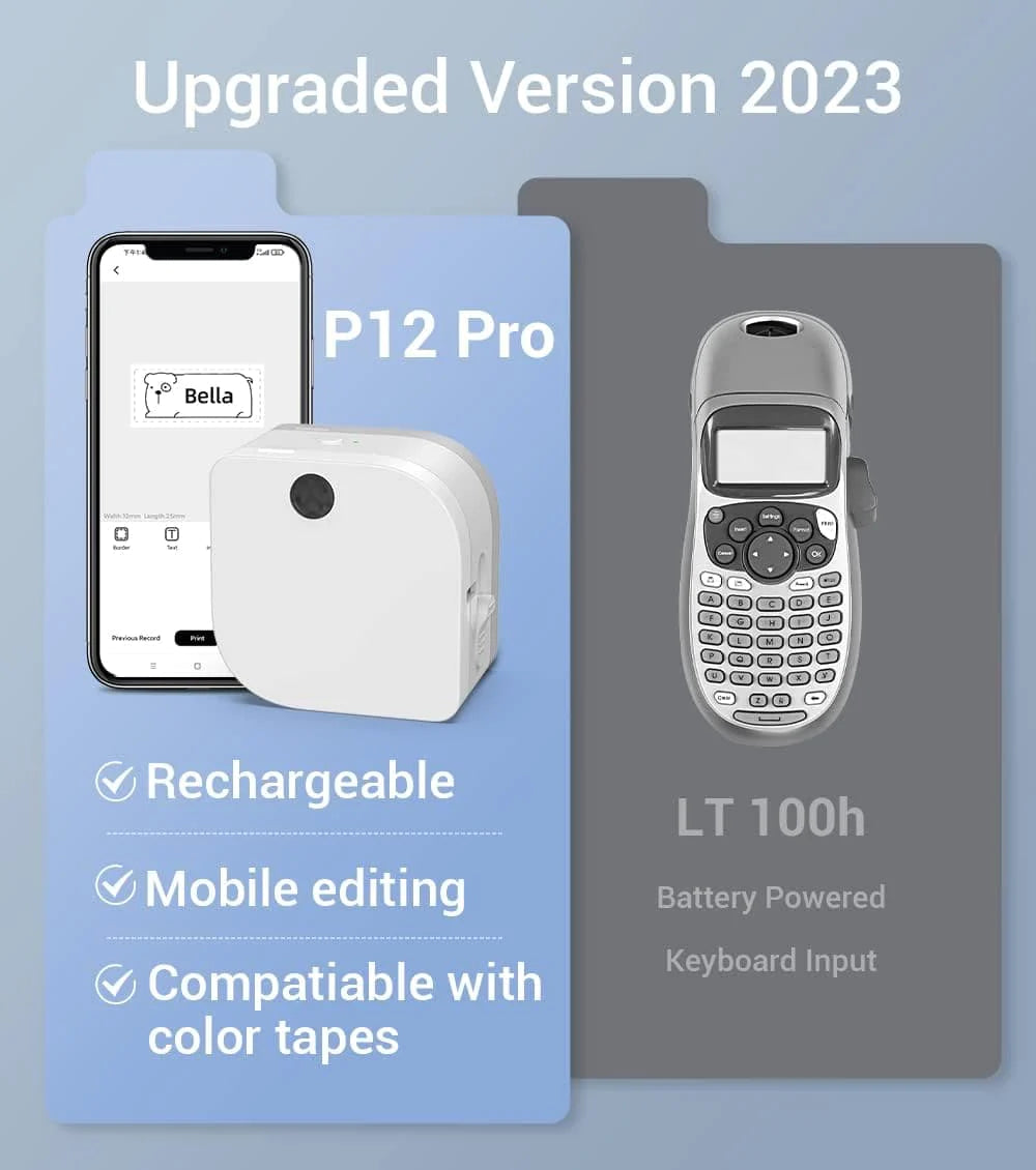 • Updated Label maker: Phomemo P12 Pro portable label maker machine is compact and lightweight, weighing only 7.7 ounces and portable can put into your bag. It includes a built-in manual cutter, allowing you to conveniently print labels on-the-go to meet your printing needs. It not only supports thermal and thermal transfer dual printing modes, but also prints color text. (To be used with color labels)