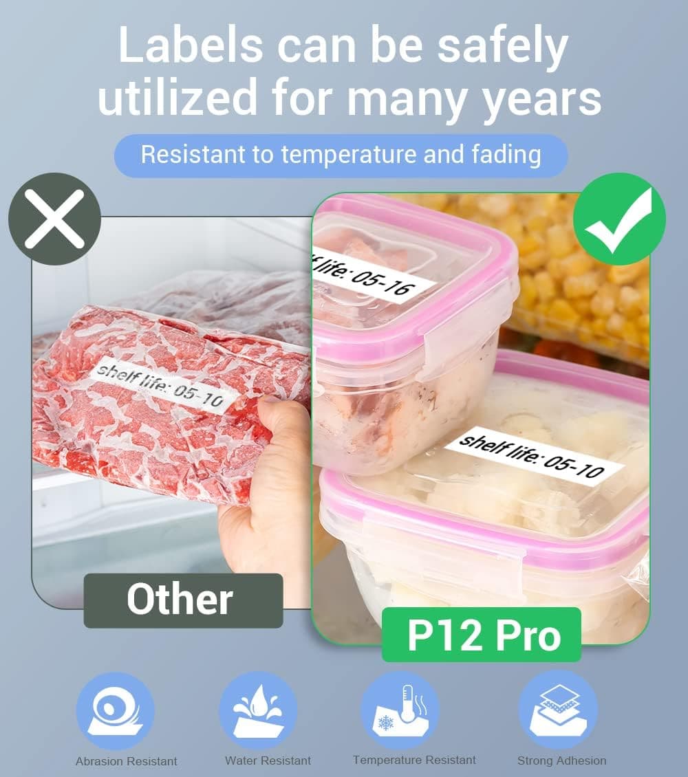• Organize with confidence: P12 pro mini thermal label printer is versatile and creative, making it easy to create stickers and use them anywhere - home storage, kitchen organization, decorating gifts, labeling clothes, office sorting, small business retail.