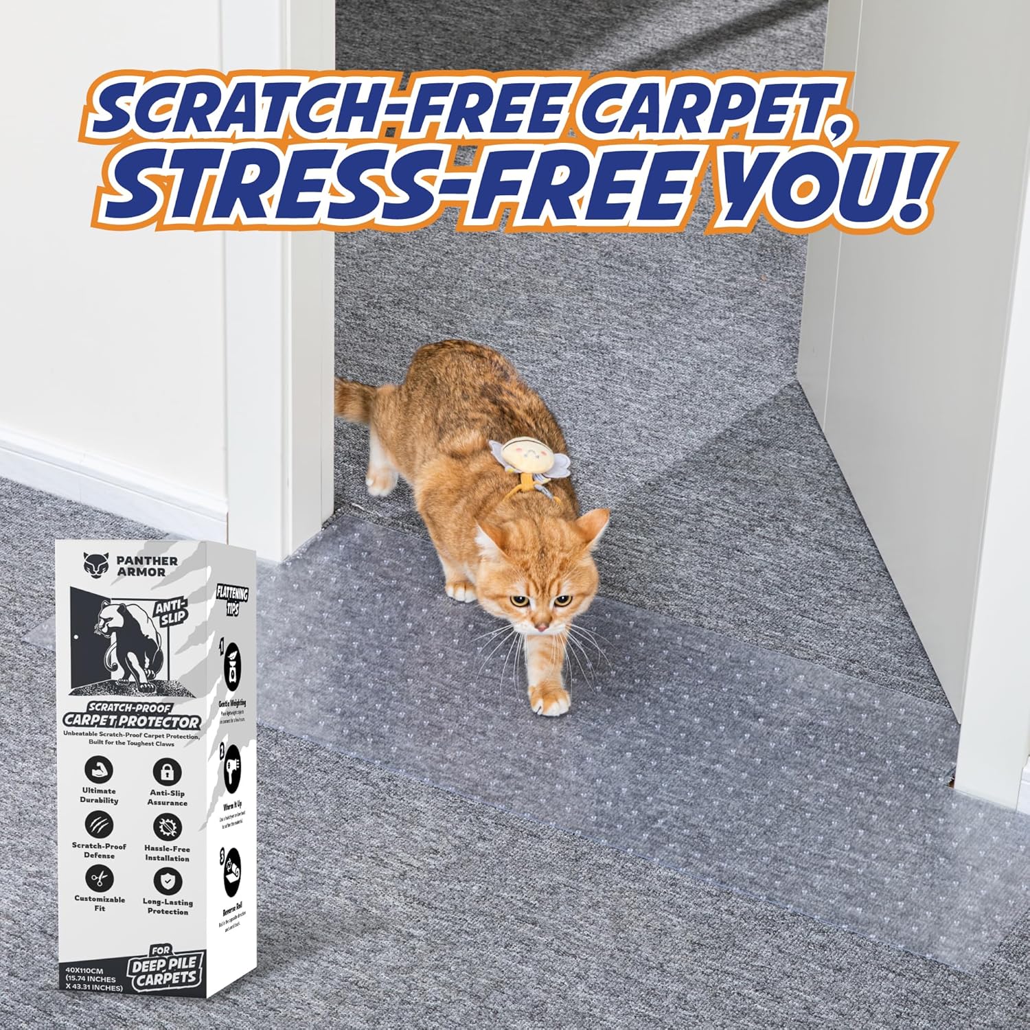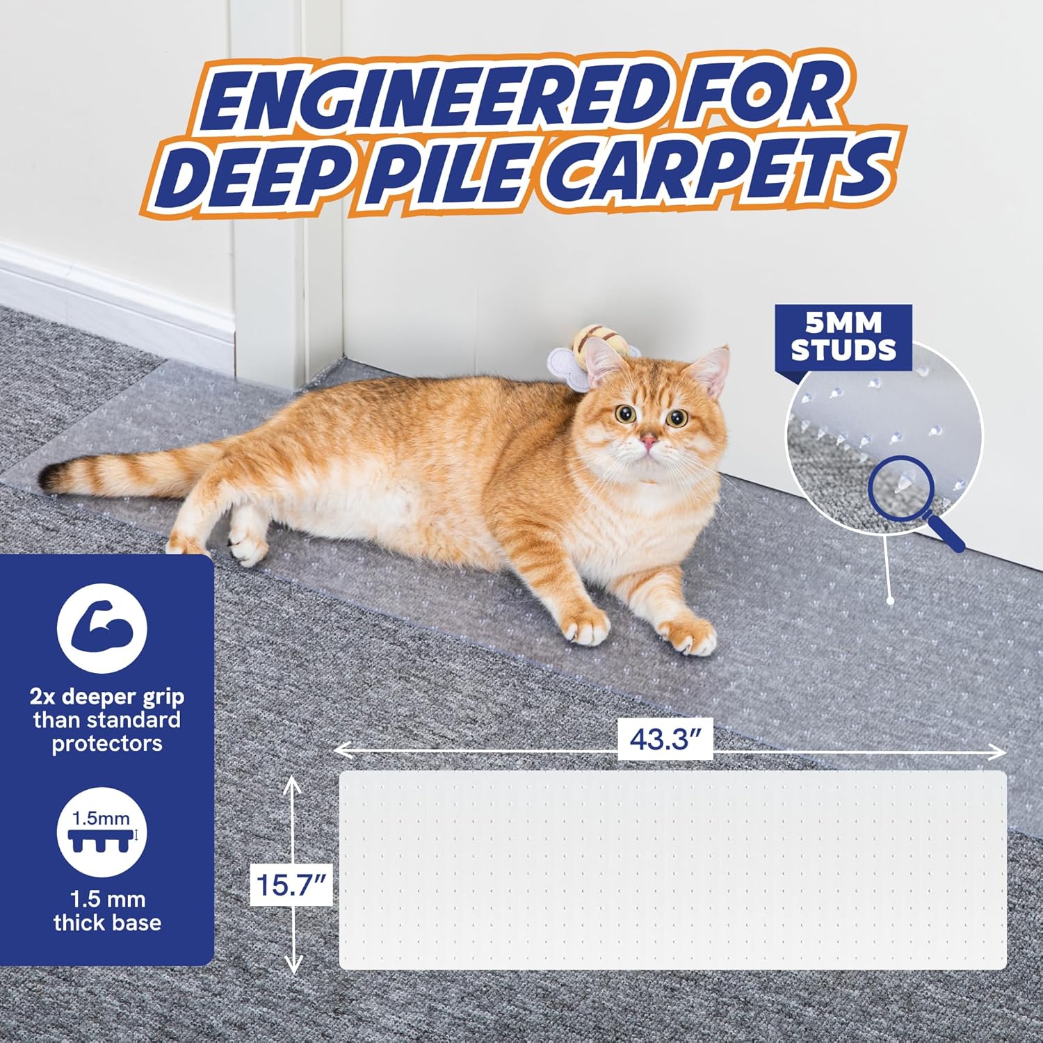 PANTHER ARMOR Carpet Protector Mat for Pets, for Deep Pile Carpet, Stop Cats from Scratching Carpets, Door Edge Protector, Plastic Runner Mat, 15.7” x 43.3”