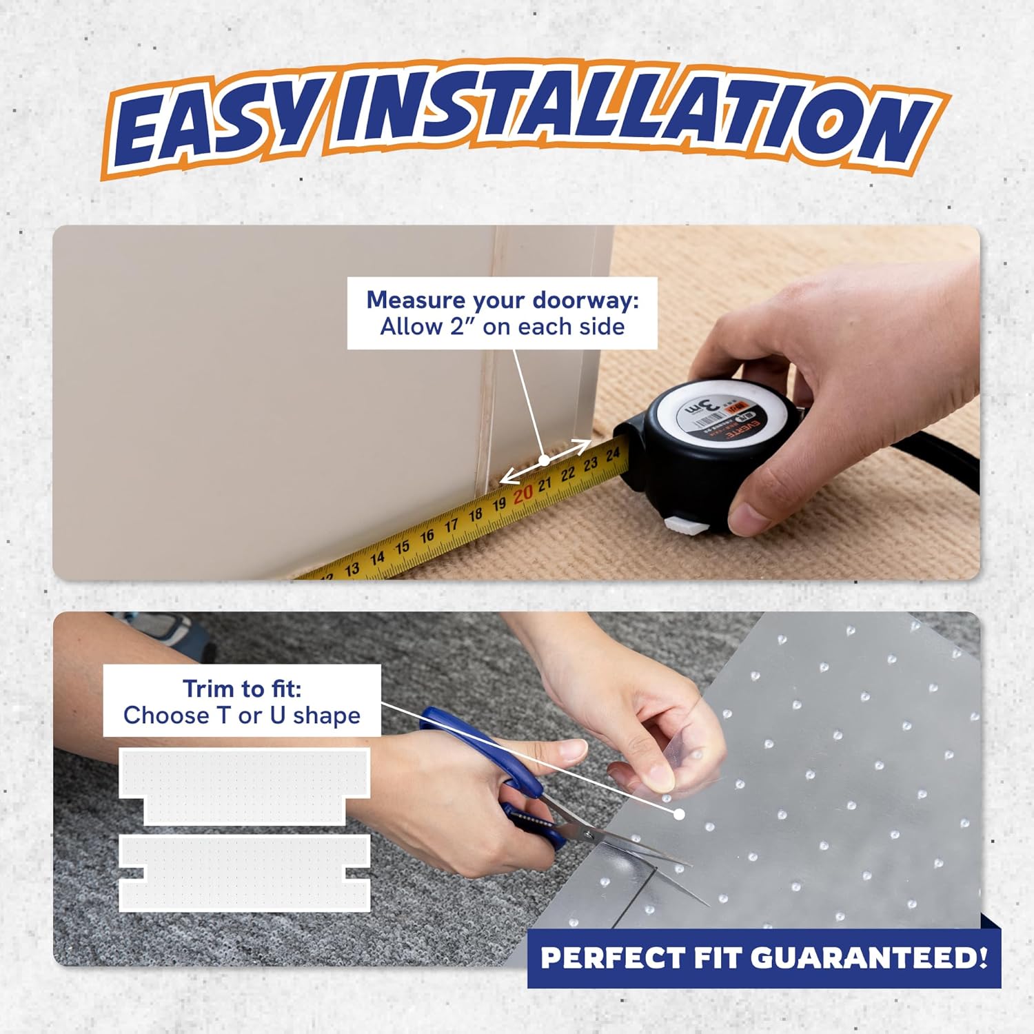 • PERFECT FIT FOR ANY DOORWAY — Each 15.7" x 43.3" carpet protector mat fits doorways up to 3.6ft wide. Easily trim the side into T or U shape for a seamless fit around your door frame, creating the ultimate protector from cat scratching.