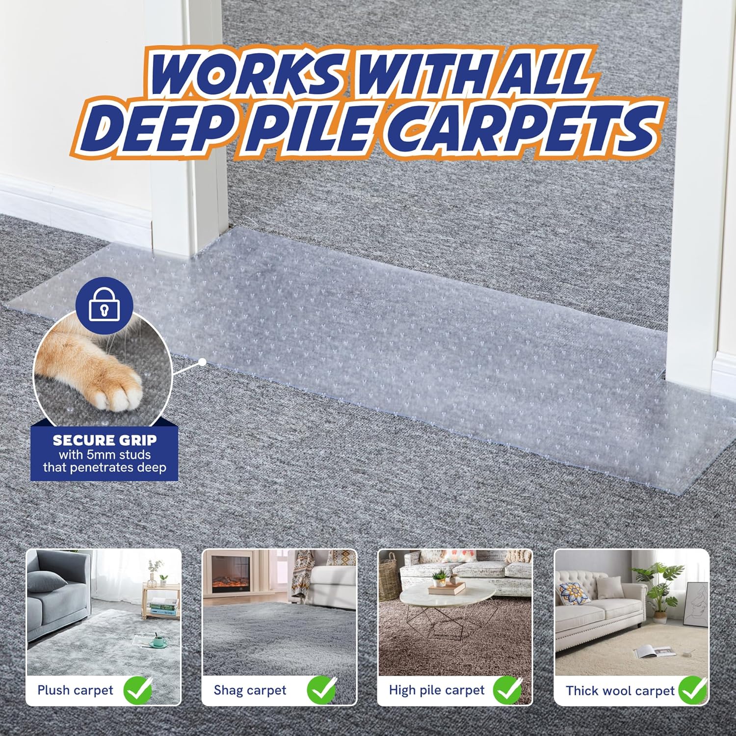 • CARPET SCRATCH STOPPER THAT WORKS — Our heavy-duty cat carpet protector features 5mm studs specifically designed to grip thick carpets securely. Unlike standard carpet scratch stoppers, these deeper anchors ensure your doorway carpet stays protected even against the most determined scratchers.
