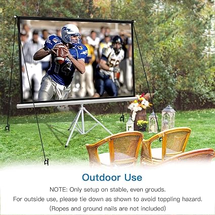 • 100 inch Projector Screen - High quality matte white screen provides 78.7" x 59.0" viewing area, with 4:3 aspect ratio, 1.0 gain and an exceptionally wide viewing angle at 160 degrees with no resolution loss at any viewing angle. Compatible with most LED, LCD or DLP projectors, for both indoor and outdoor use, such as a company conference presentation, classroom training, public display, home theater, wedding ceremony and so on.