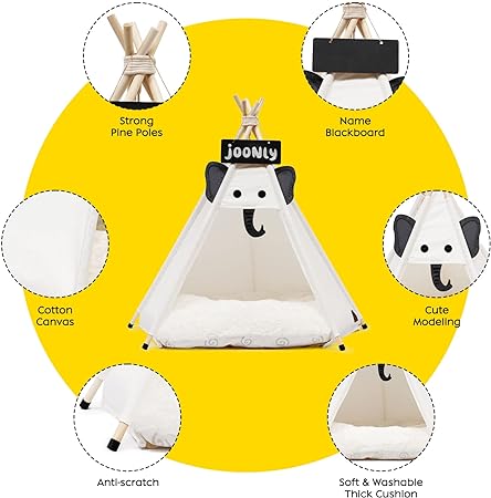 • UNIQUE PET TEEPEE --- The pet teepee for small dogs with strong pine poles, cute elephant pattern tent cloth design and thick cushion, this dogs tents house provides a safe and comfortable resting place and home decoration.