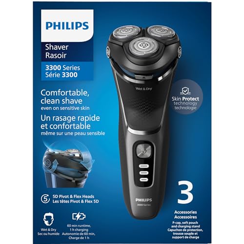 Philips Electric Shaver Series 3300, Wet & Dry with Self-Sharpening PowerCut Blades, S3343/13