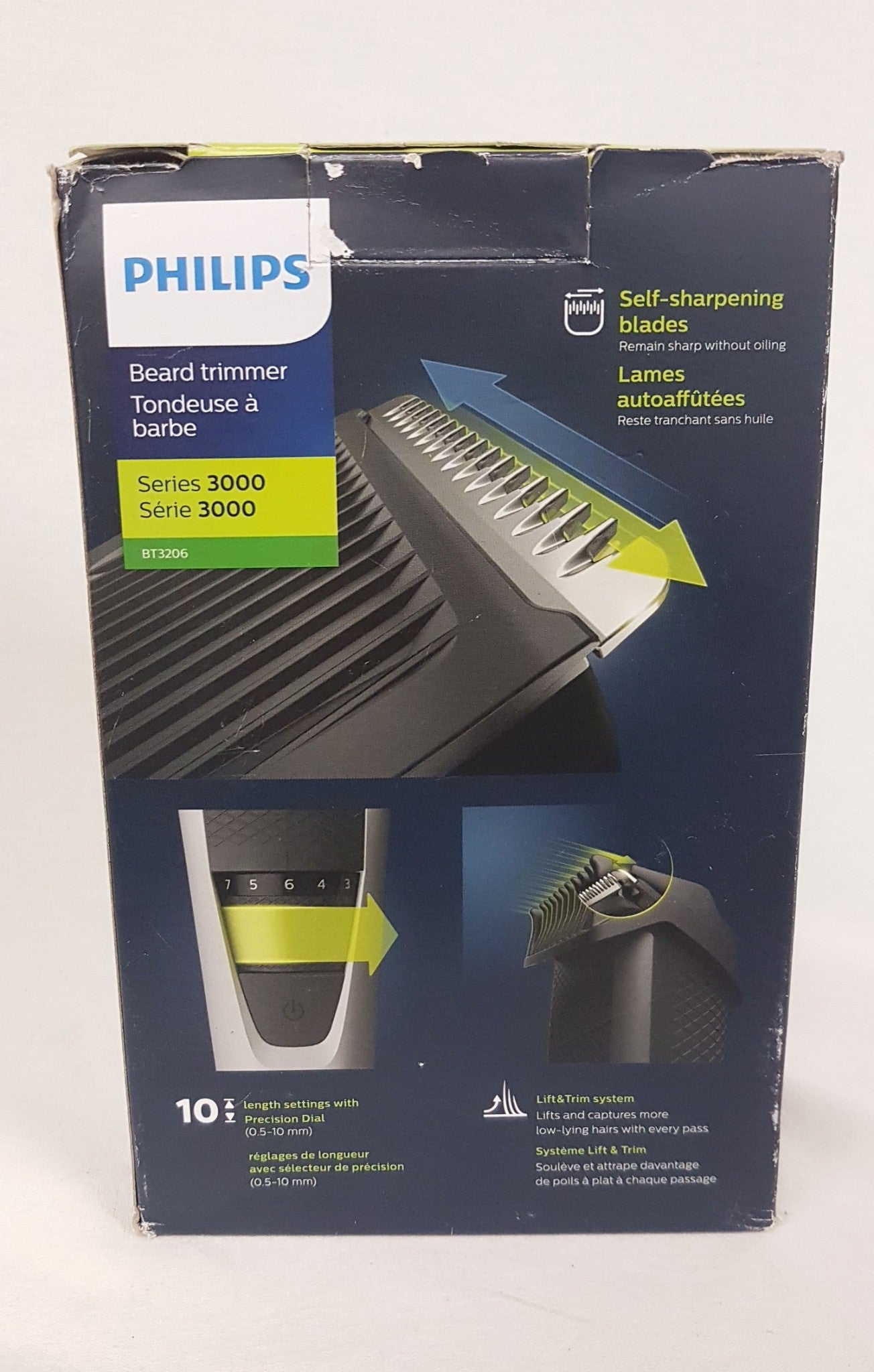 • Trim your stubble beard with our new Lift & Trim system: the comb lifts and guides the hairs to the level of the blades for an even trim.