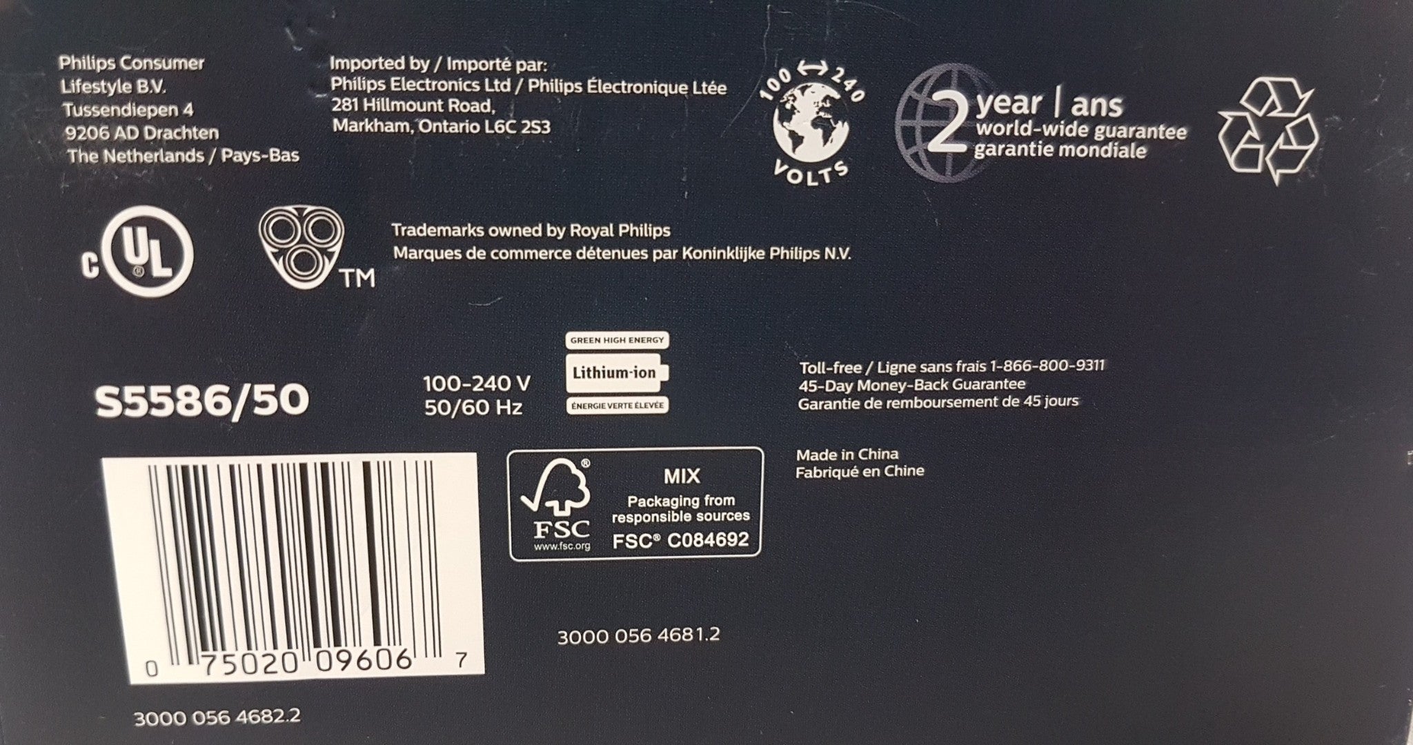 PHILIPS Series 5000 Wet & Dry Electric Shaver, S5586/50 NEW OPEN BOX