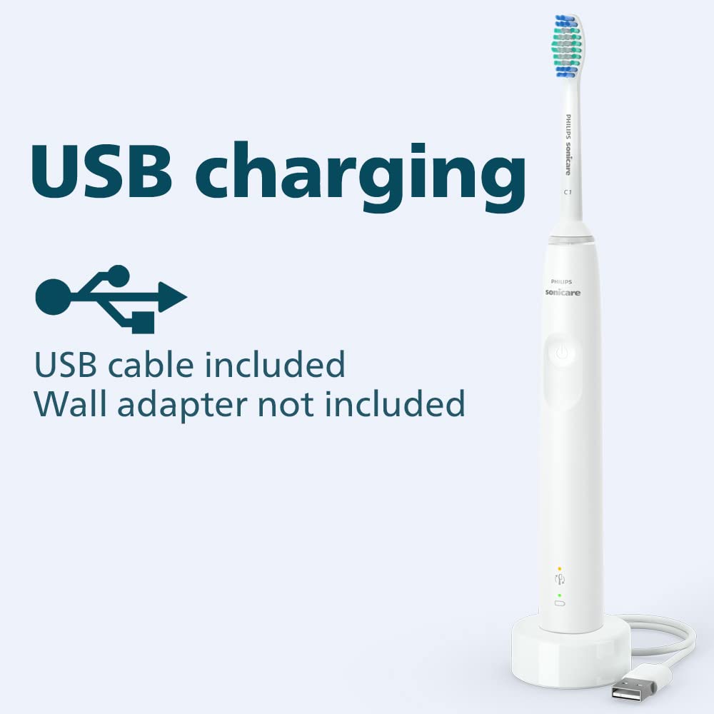 - 1 Philips Sonicare 3100 electric toothbrush, 1 SimplyClean (C1) brush head, 1 USB charger (wall adaptor not included)