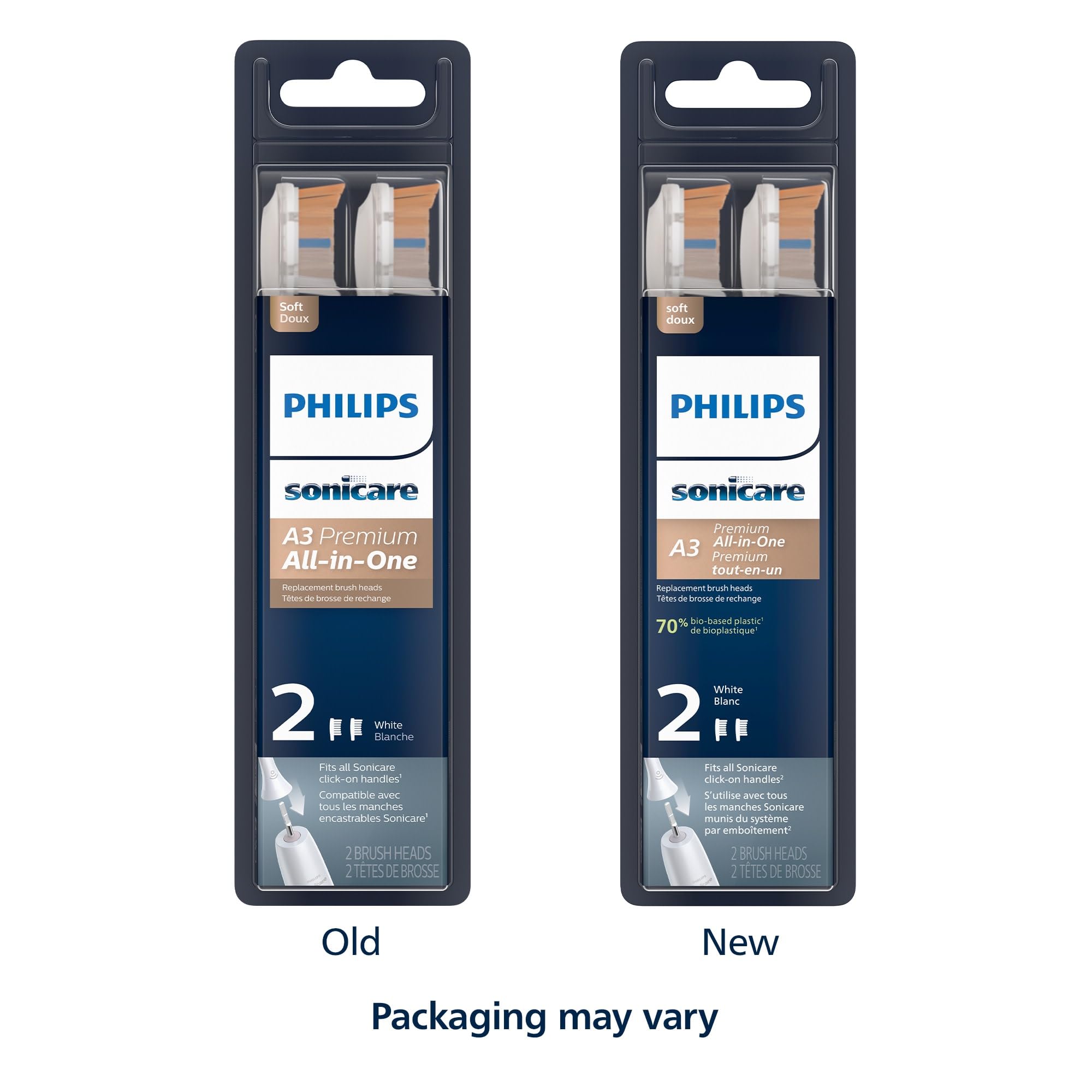Philips Sonicare A3 Premium All-in-One, Genuine Replacement Toothbrush Heads, White, 2 Pack, HX9092/65
