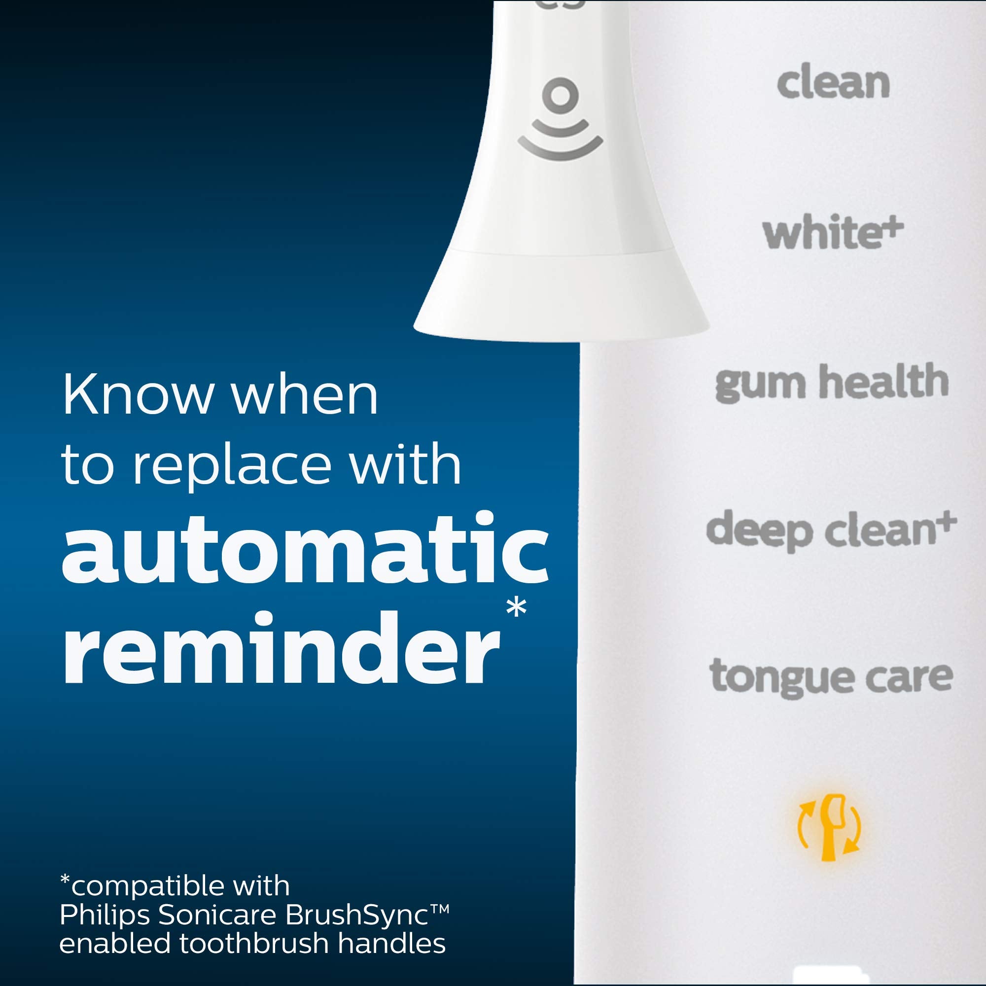 Details: The Philips Sonicate Diamond Clean brush head gently lifts away stains to whiten teeth. Designed to work with all click-on Sonicate models, these replacement brush heads feature highly effective diamond-shaped bristles to whiten teeth in just 1 week and gently remove 7x more plaque than a manual toothbrush. Use with a Philips Sonicate Brush Sync(TM) compatible handle (Diamond Clean Smart or Protective Clean) to unlock Smart features: Brush Sync mode-pairing triggers your handle to select optimal mode and intensity level for exceptional plaque removal (certain models only); Brush Sync replacement technology tracks how often and how hard you brush and will notify you when it is time to replace your brush head. Also, reminder bristles fade to let you know when it's time for replacement. Replace your brush head every 3 months as recommended by the American Dental Association. A fresh brush head every 3 months maximizes the effectiveness of Philips' unique Sonicate technology.