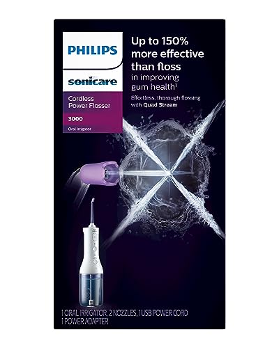 Philips Sonicare Power Flosser 3000 Cordless, Oral Irrigator Quad Stream technology and whisper quiet, White, HX3826/21