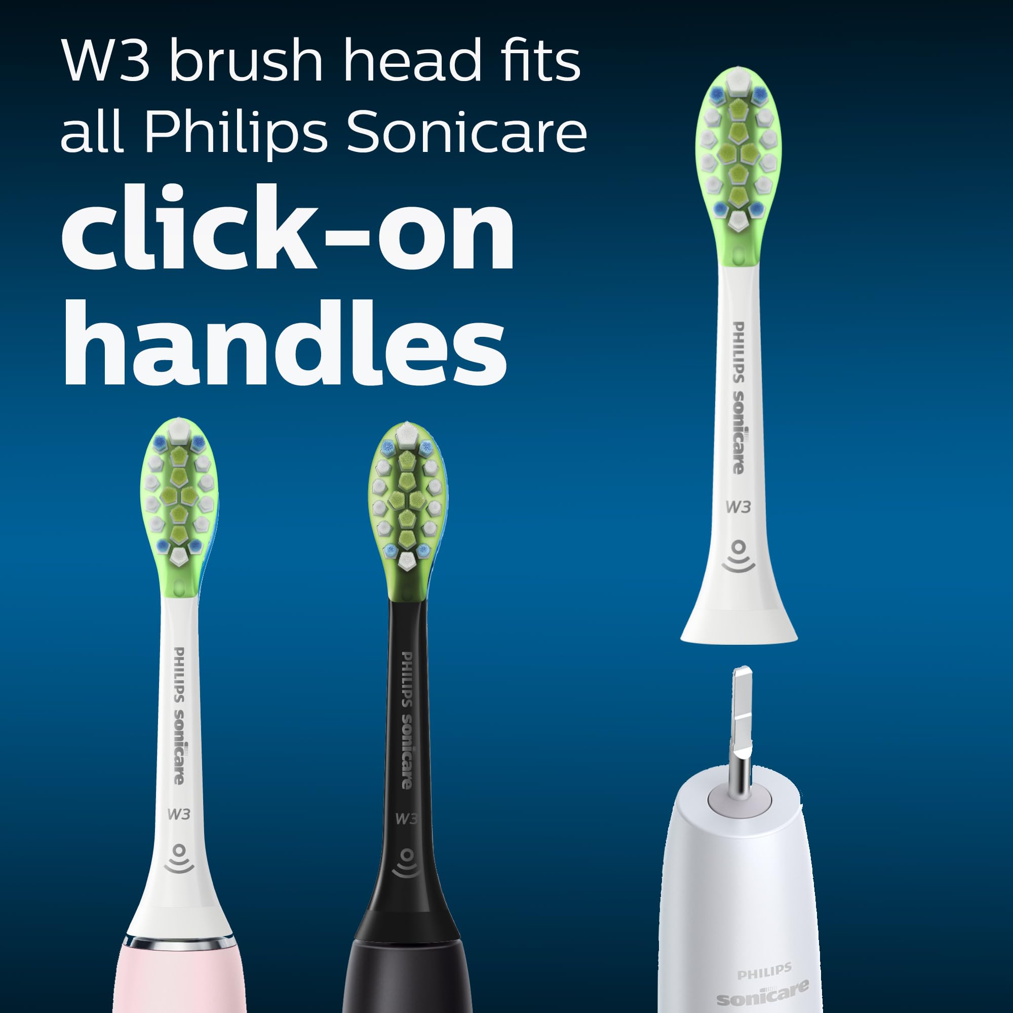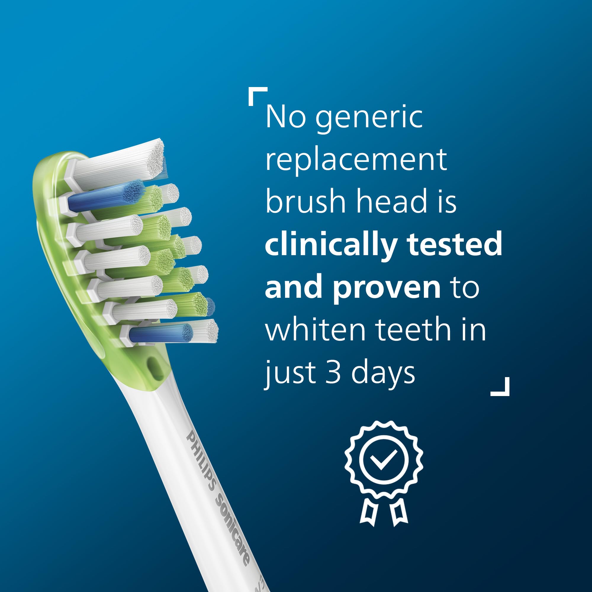 Details: The Philips Sonicare Premium White brush head gives you a whiter, brighter smile. Designed to work with all click-on Sonicare models, these replacement brush heads have polishing bristles that remove surface stains to visibly whiten teeth in just 3 days, while you get an exceptional deep clean. Use with a Philips Sonicare BrushSync(TM) compatible handle (DiamondClean Smart or ProtectiveClean) to unlock Smart features: BrushSync mode-pairing triggers your handle to select optimal mode and intensity level for exceptional plaque removal (certain models only); BrushSync replacement technology tracks how often and how hard you brush and will notify you when it is time to replace your brush head. Also, reminder bristles fade to let you know when it's time for replacement. Replace your brush head every 3 months as recommended by the American Dental Association. A fresh brush head every 3 months maximizes the effectiveness of Philips’ unique Sonicare technology.