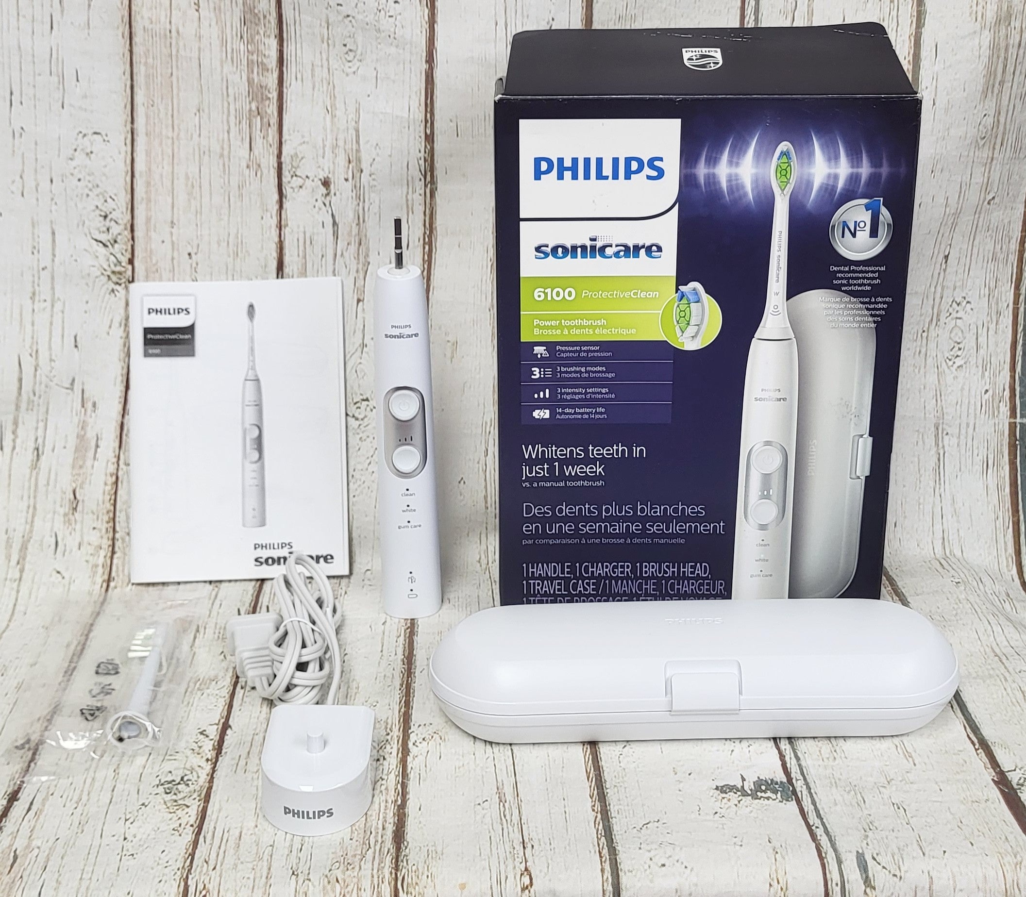 Philips Sonicare Protectiveclean 6100 Rechargeable Electric Toothbrush, Whitening, White, HX6877/21