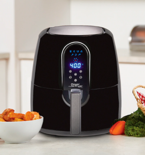 The Power AirFryer Elite brings you an amazing way to fry foods using little to no oil! Using Rapid Air Technology, it cooks food by using super-heated air: simply add your food to its large 5.5-quart basket, slide it into the air fryer unit, and select your cooking setting from one of the seven preset programs. The air fryer's digital touch panel display eliminates the guesswork and ensures whatever you're cooking is perfectly delicious time after time, and since very little or no oil is used, food comes out healthier with less added fat. This fryer does all the thinking for you, and when the timer is done, the automatic shut-off stops the cooking cycle so you never overcook or burn your meal. You’ll love the versatility of this amazing kitchen wonder!