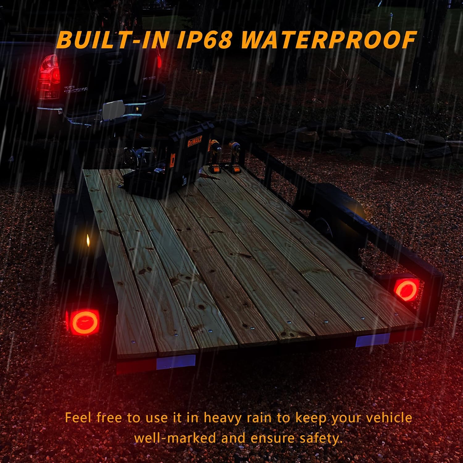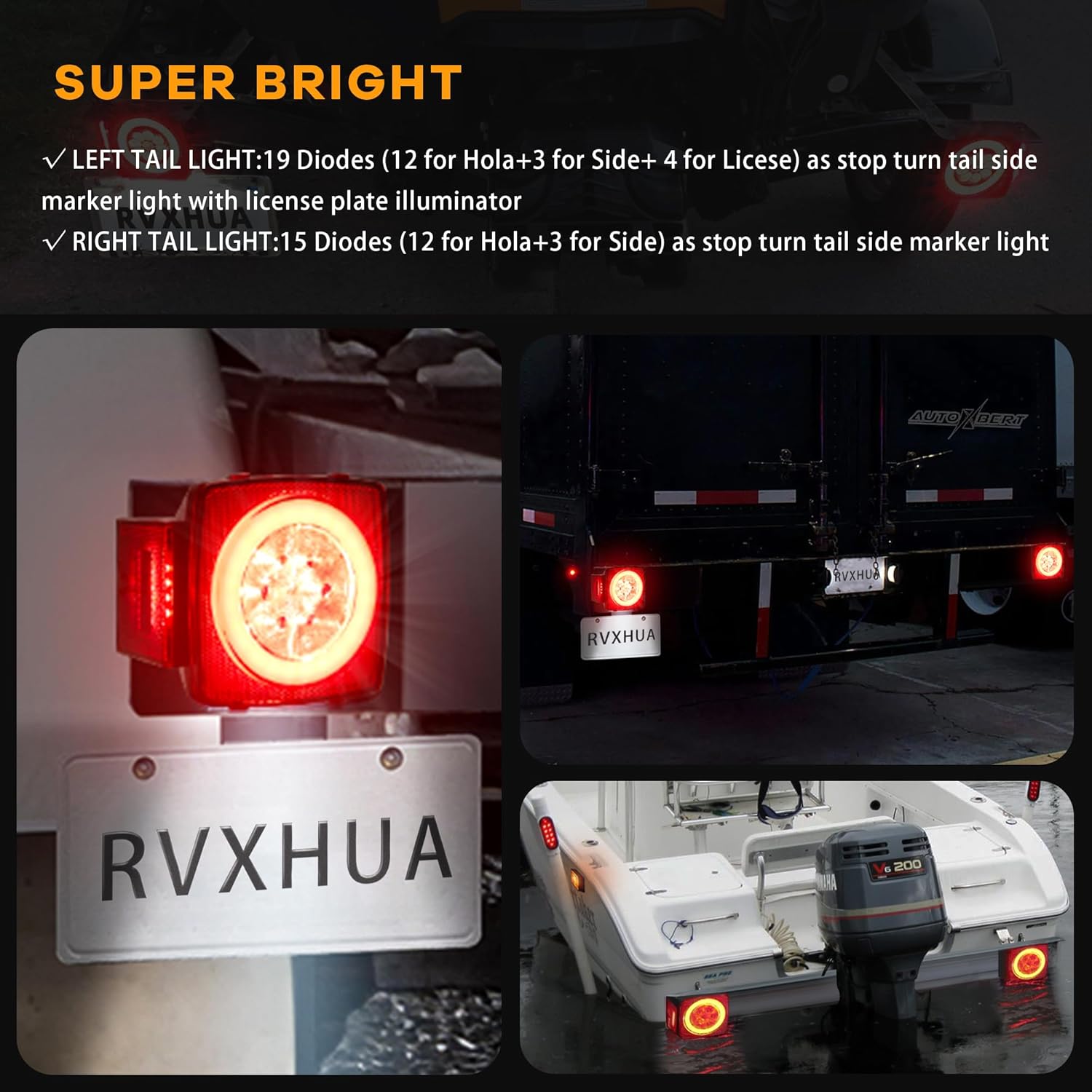 RVXHUA LED Submersible Trailer Tail Lights Kit, 12V LED Utility Boat Lighting with Halo Glow