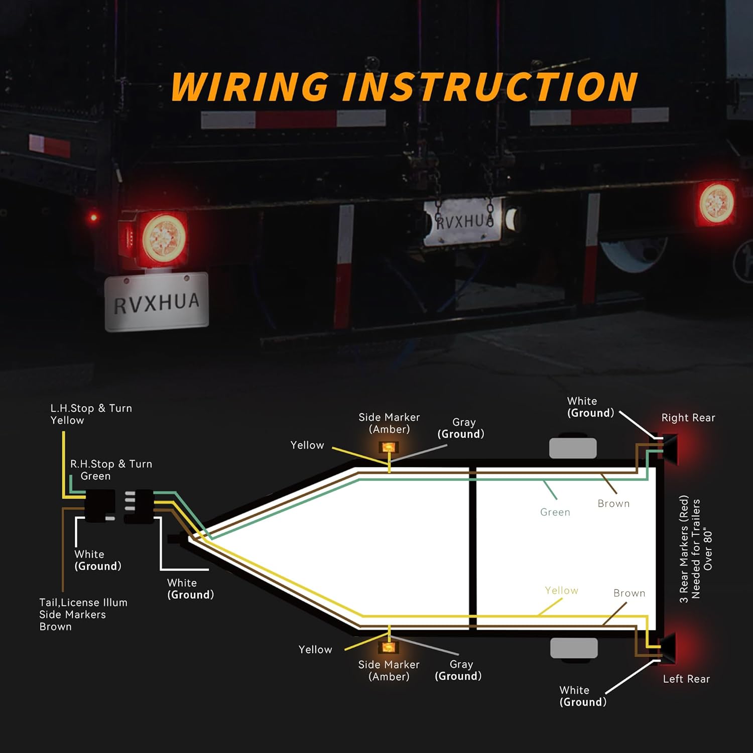 • [Marine-Grade Build] Boasting 100% copper wires with clear color-coding, polycarbonate housing, and acrylic light surface. These led trailer light kit are corrosion-resistant and works well in harsh weather or saltwater.