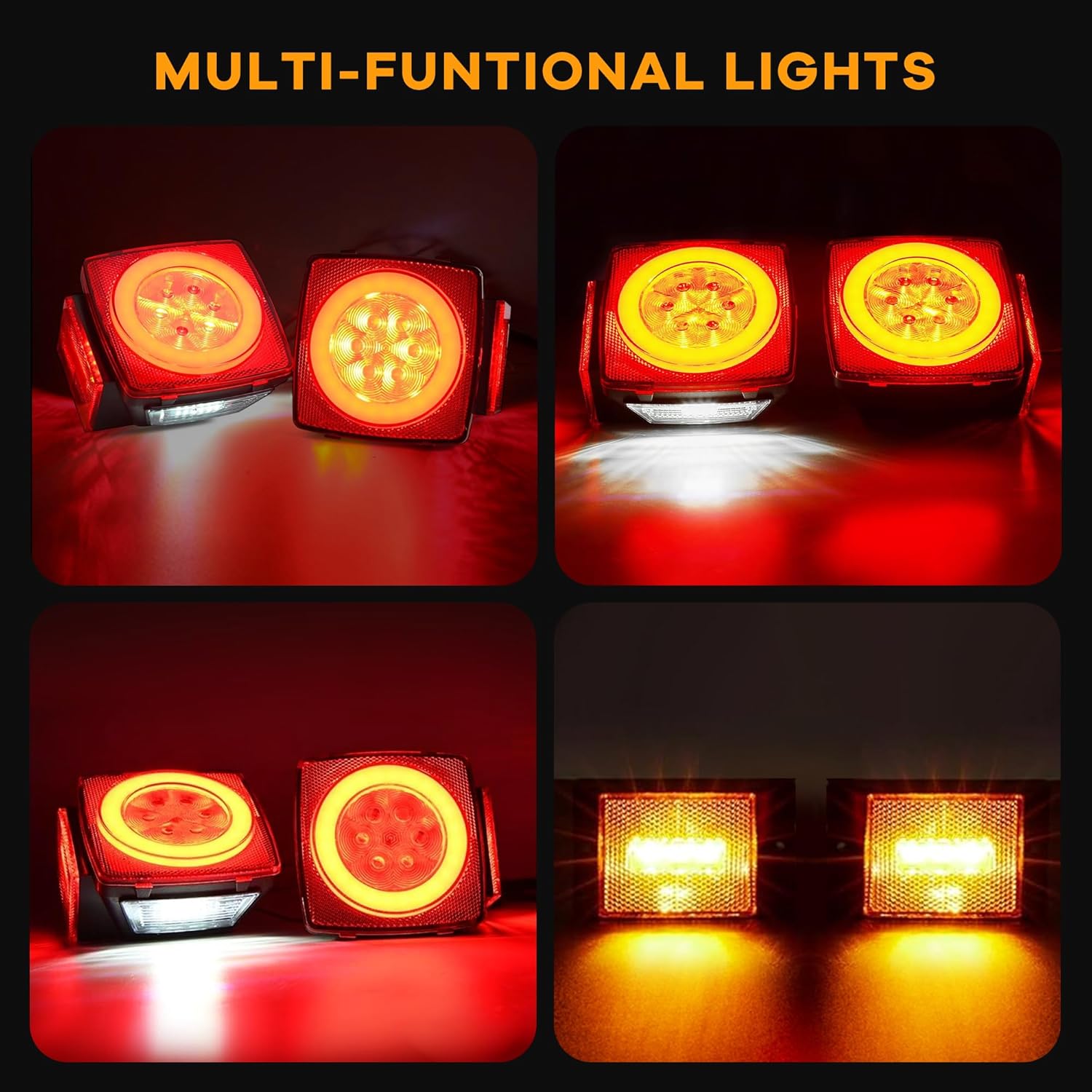 • [Complete Utility Kit] Everything you need in one package: 2 square halo tail lights, 2 amber clearance lights, a 25ft wire harness, along with bracket and mounting accessories. Offering seven functions: stop, turn, tail, rear reflector, side reflector, side marker, and license plate light.