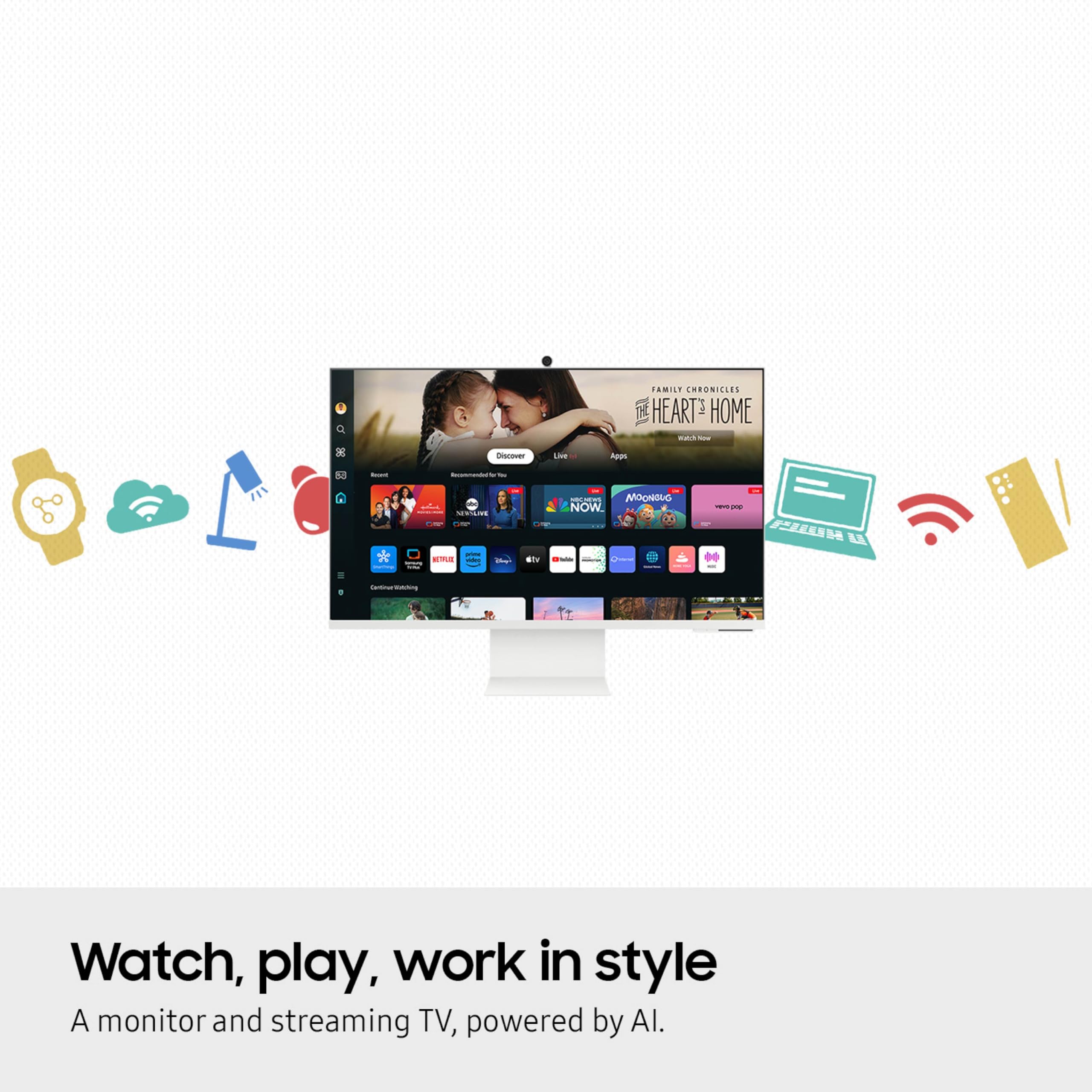 Samsung 32 Inch M8 White UHD Smart Monitor w/ 4k AI upscaling,(LS32DM801UNXZA) -KM4