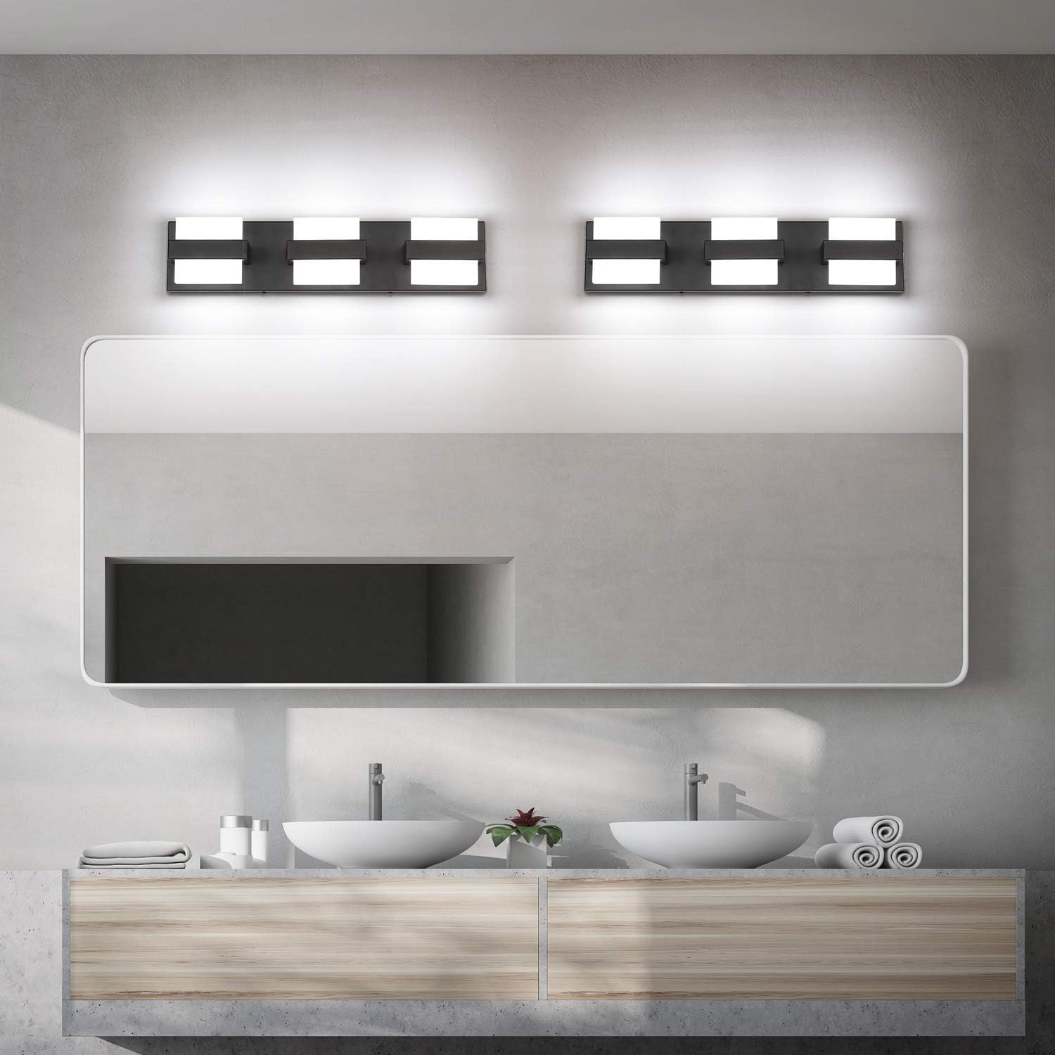 SOLFART 3 Lights Black Bathroom Modern Vanity Lights LED Vanity Light