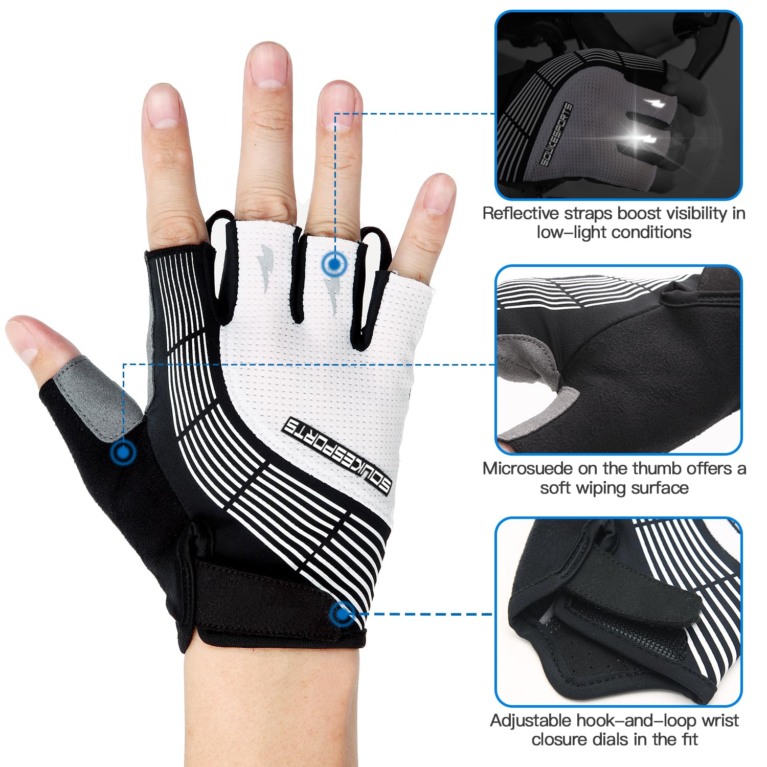 Souke Sports Cycling Bike Gloves Padded Half Finger Bicycle Shock-Absorbing Anti-Slip MTB Road Biking for Men/Women