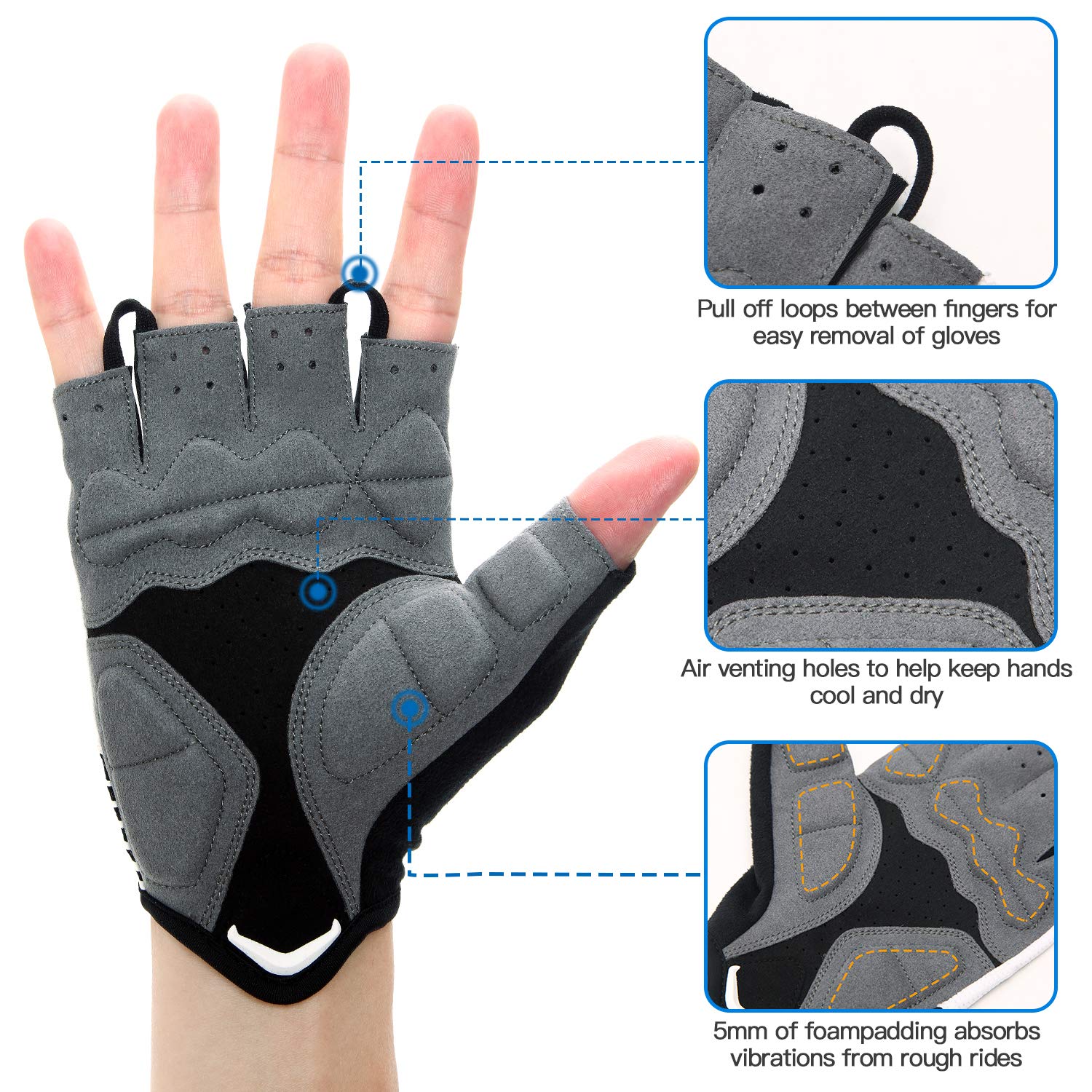 - 【ANATOMIC FIT AND EXCELLENT PROTECTION】The cycling gloves for men are equipped with 5mm (0.2in) rebound foam padding in the palmsto offer shock absorption and impact resistance, reducing fatigue to help you perform longer. This bicycle glove features optimized padding that delivers exceptional ergonomic design and high-quality construction to eliminat the bulky feel and allow your hands to move naturally for enhanced control.