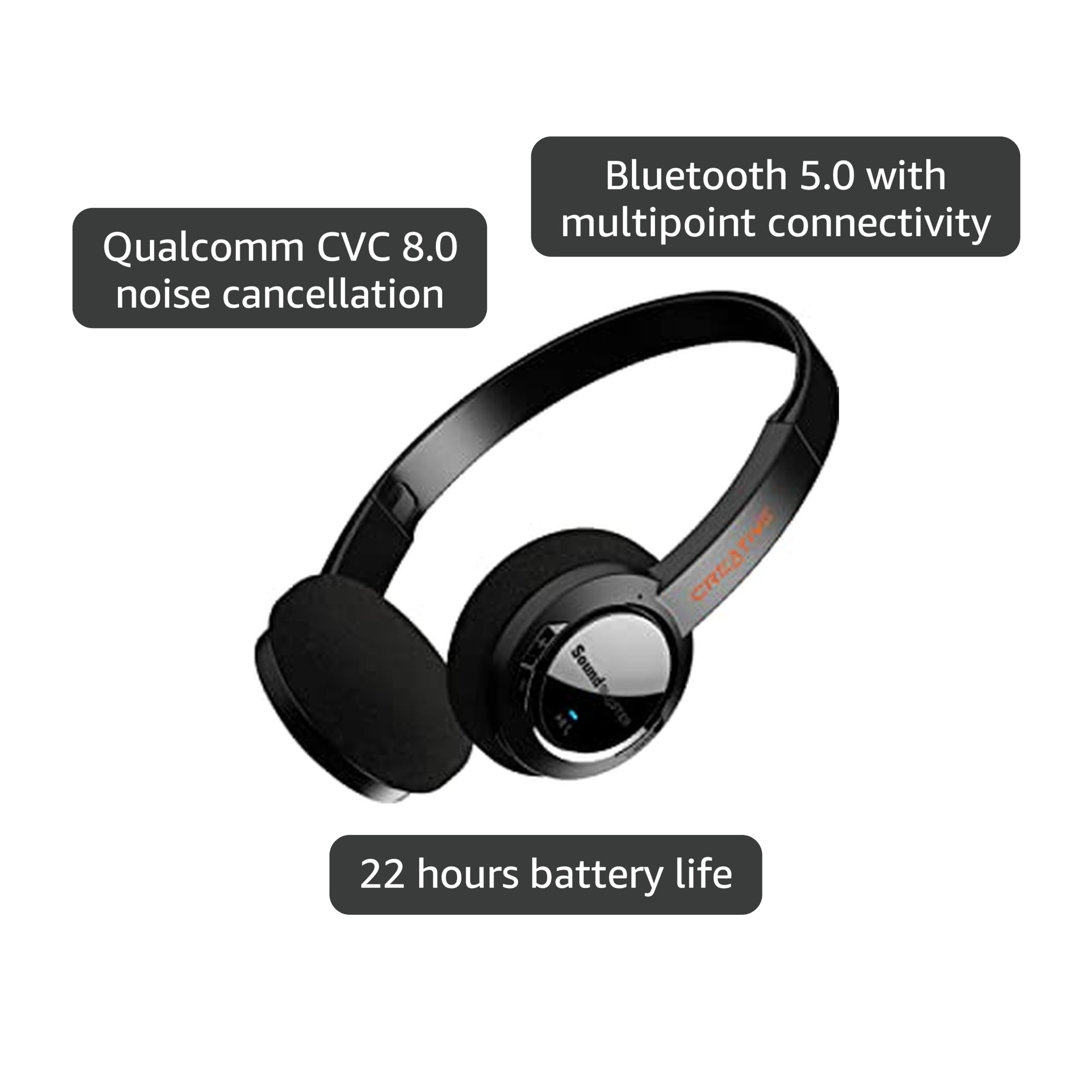 Creative Sound Blaster JAM V2 On-Ear Lightweight Bluetooth 5.0 Wireless Headphones with USB-C, aptX Low Latency, aptX HD, Multipoint Connectivity, Voice Detection and Noise Reduction, 22 Hours Battery Life