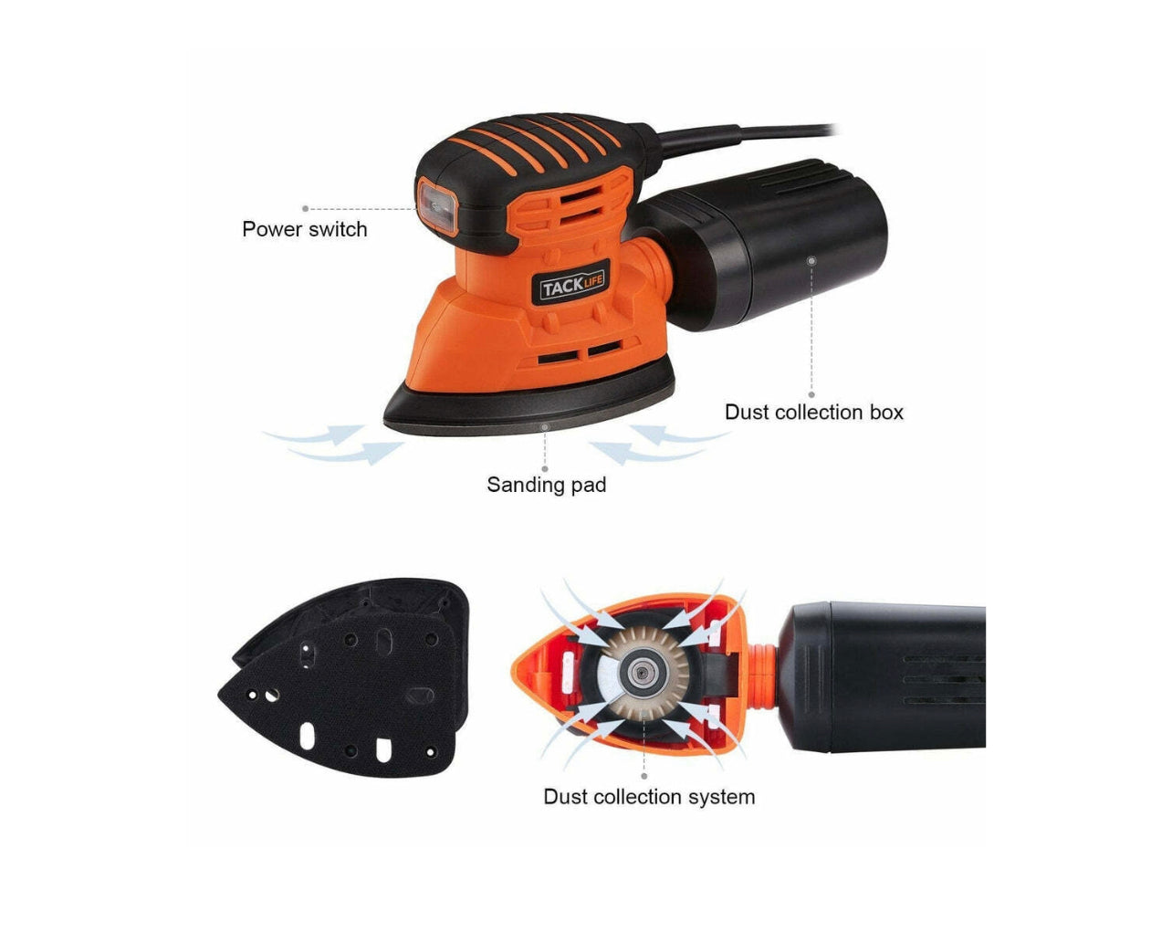• TACKLIFE Classic Mouse Detiail Sander with Replacement Sandpaper Pads, 12000 Orbits/Minute, Vacuum Cleaner Connection, Ergonomic Design, Blue