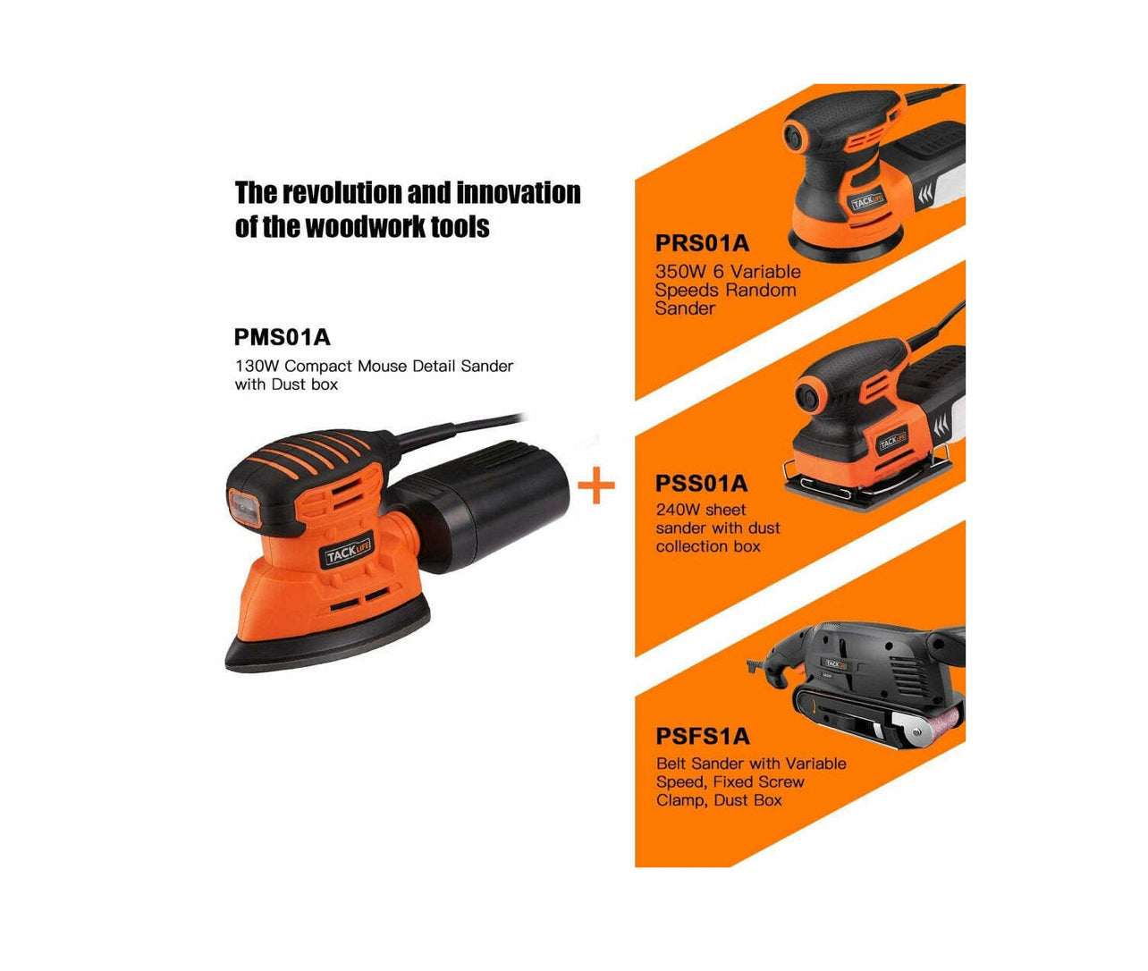 TACKLIFE Classic Mouse Detiail Sander with Replacement Sandpaper Pads, 12000 Orbits/Minute, Vacuum Cleaner Connection, Ergonomic Design, Blue\\