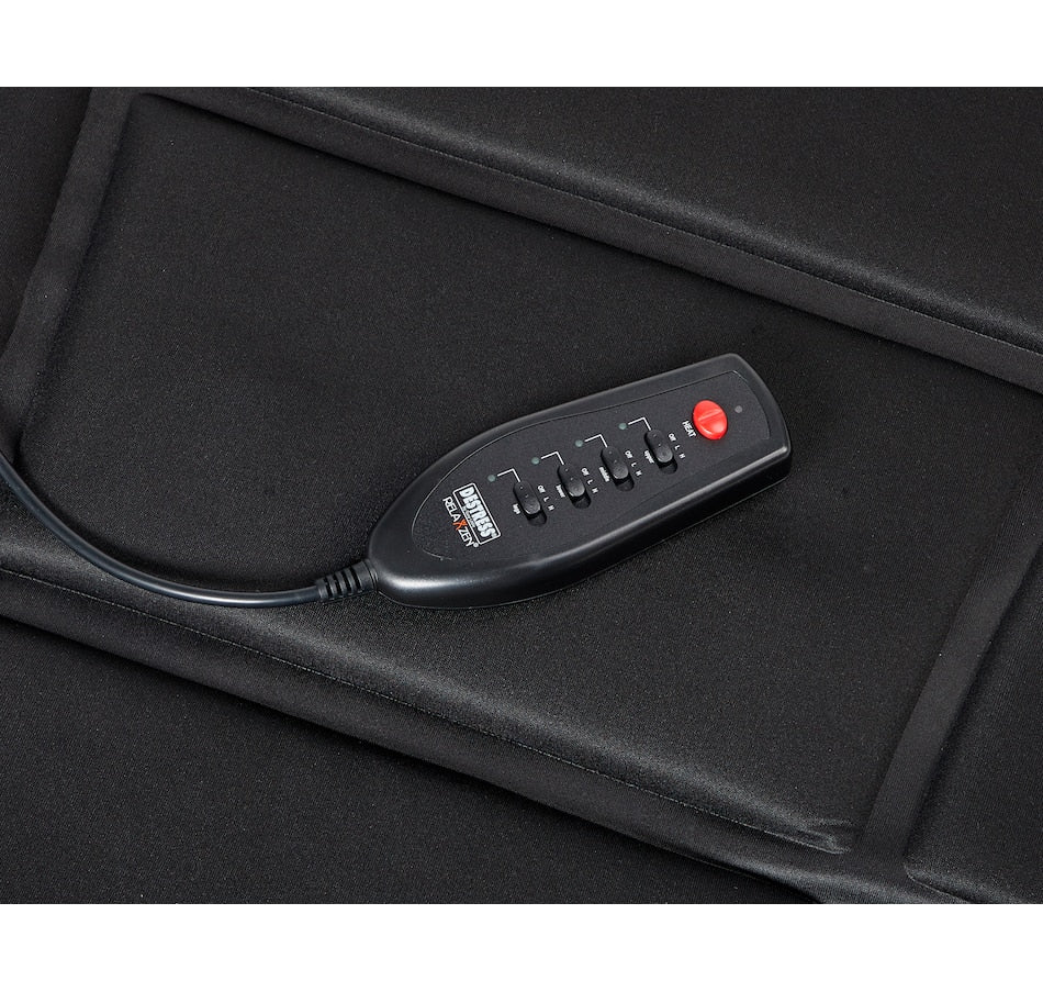 This massage mat from Tony Little features 10 invigorating massage motors and soothing heat treatment for the lumbar area. Its massage controls allow you to selectively activate massage for upper, middle, lower, and legs and to choose between high and low for each section.