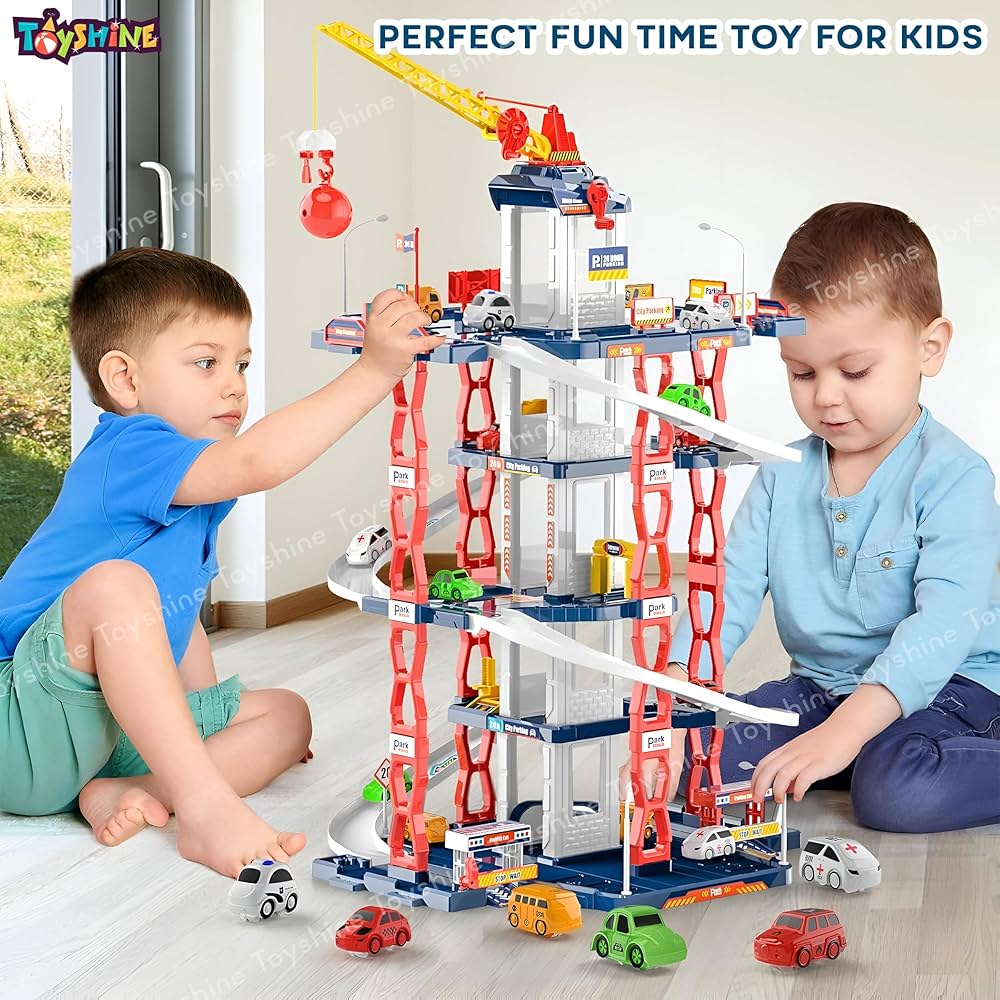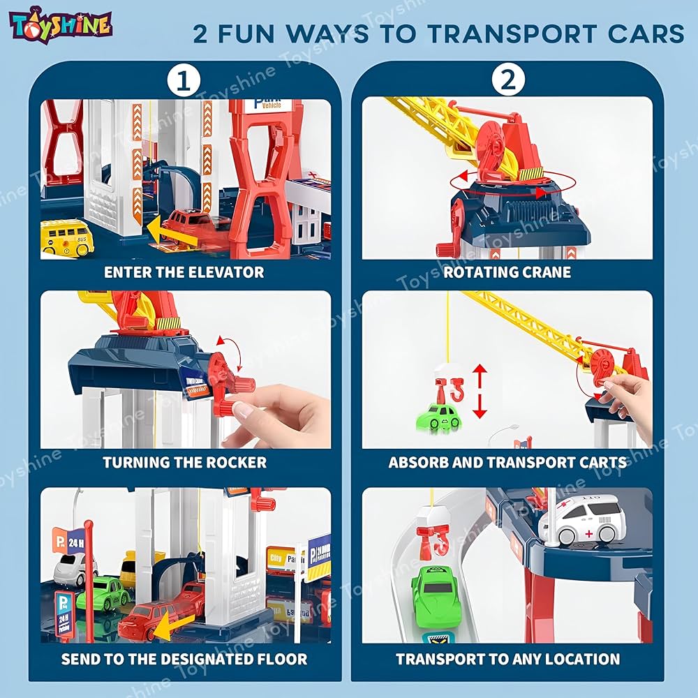 Toyshine 56cm DIY Multi Story City Parking Ramp Track Toy with Hand Control Crane, Garage Toy | Parent Child Interactive Puzzle Toy with 3 Mini Cars for Kids 3+Yrs