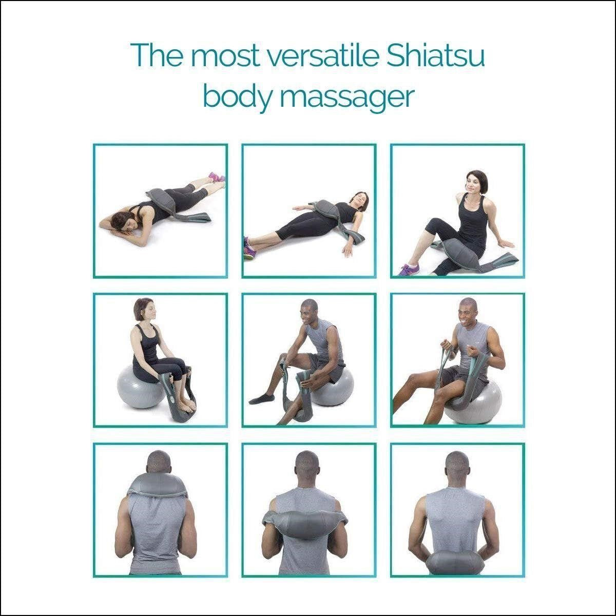 Refurbished no retail box TruMedic InstaShiatsu+ Neck, Back, and Shoulder Massager - Cordless & Rechargeable, Shiatsu Neck Massager with Heat - Use at Home & Office (IS-2000) About this item FULL BODY TENSION AND PAIN RELIEF: Enjoy a wonderful, deep-kneading shiatsu massage with heat anytime, anyplace with the newest self shiatsu back and neck massager. Just slip your arms or hands through the wrist supports and tighten your grip to experience an invigorating shiatsu massage that will deeply knead and loosen your muscles. The shiatsu massager with heat by TruMedic feels excellent on your neck, back, calves, thighs, lower back or anywhere you need relief. CUSTOMIZABLE MASSAGE: You can experiment with the InstaShiatsu Plus to find body areas and positions that make you feel great. You control the pressure and area - by pulling tighter or relaxing your grip, you can apply just the right amount of force for a perfect massage. You'll swear there's a real person massaging your every knot out. EASY TO USE: The shiatsu neck and shoulder massager features three simple buttons: On/Off, Heat and Reverse along with a convenient LED indicator light. RECHARGEABLE & CORDLESS: The shiatsu neck massager with heat has a rechargeable lithium-ion battery that provides hours of cordless shiatsu massage relief with just a single charge. When the battery does run out of your neck and shoulder massager, simply plug it in using the included A/C adapter and use it while it charges. SOOTHING HEAT FUNCTION: Turn on the heat feature of your shiatsu massager and enjoy the benefits of a warming neck message with heat that soothes aches and pain while relieving stress for deep relief.