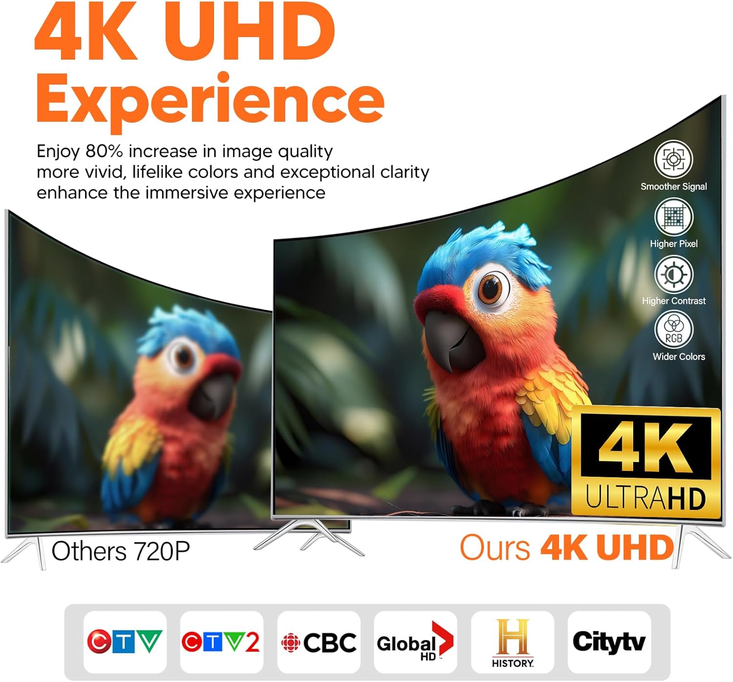 • 【2024 Upgrade Indoor TV antenna】The digital TV antenna designed to enjoy HD local channels without cable bills, providing crystal-clear viewing for popular channels like CTV, CTV2, CBC, NBC, Fox, CITYTV, among others. Ideal antenna for smart TV, indoor antenna for TV, and other types of TVs.