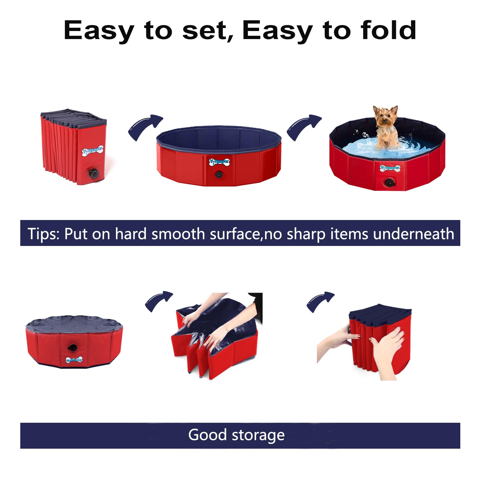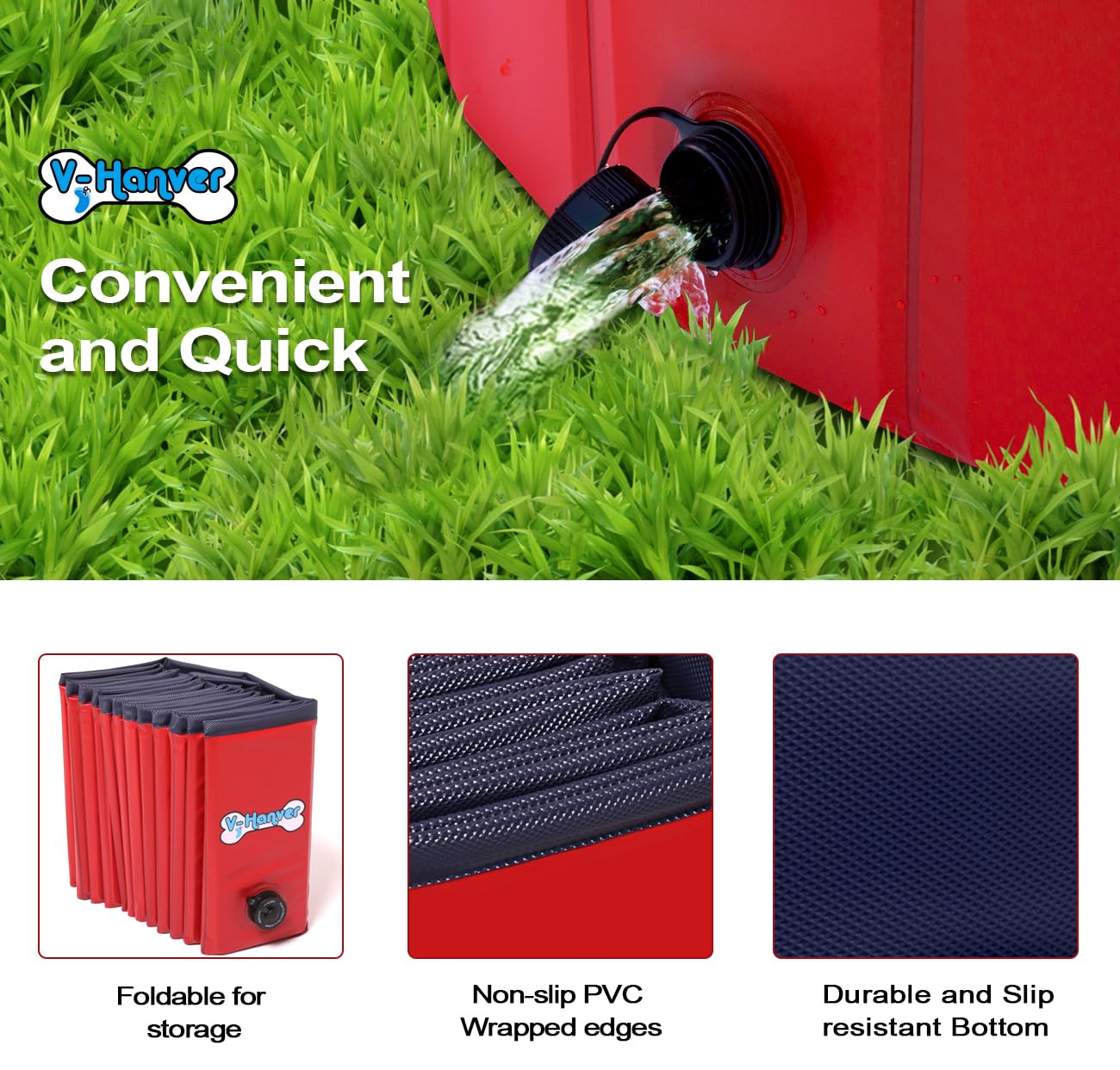 - PORTABLE & SIMPLE: the convenient fold-down design makes it simple to pack and store while not in use. Easy to organize, storage, and carry with the EVA bag. A built-in drainage hole makes draining the water fast and refreshes the water