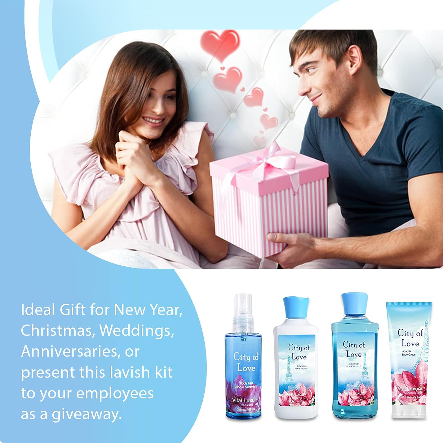 Vital Luxury Bath & Body Kit, 3 Fl Oz, Ideal Skincare Gift Home Spa Set, Includes Body Lotion, Shower Gel, Body Cream, and Fragrance Mist (Cityoflove)