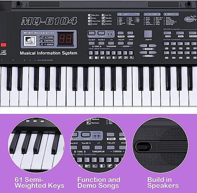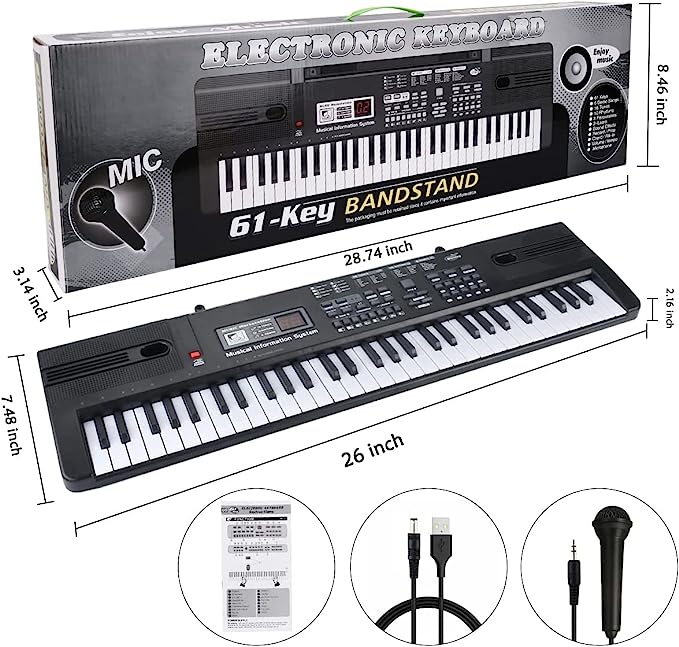 WOSTOO Kids Piano Keyboard, 61 Keys Multi-Function Electronic Keyboard Educational Toy, Rechargeable Portable Piano with Microphone Musical Instrument for Kids Beginners Girls Boys